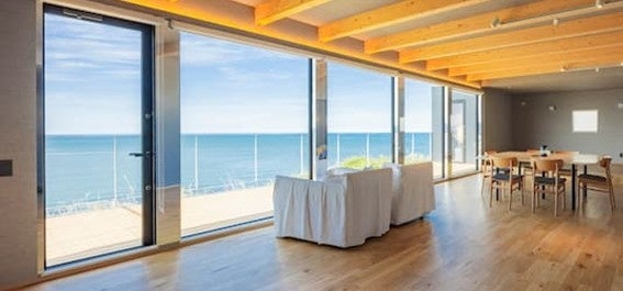「the望来」は望来にある別荘集積地から少し離れた海抜30メートル超の急峻な崖の淵に建つ4棟の貸別荘。全て左右180度の視界が開けた、海を望む大きな窓を持つ、1棟貸しの別荘である。