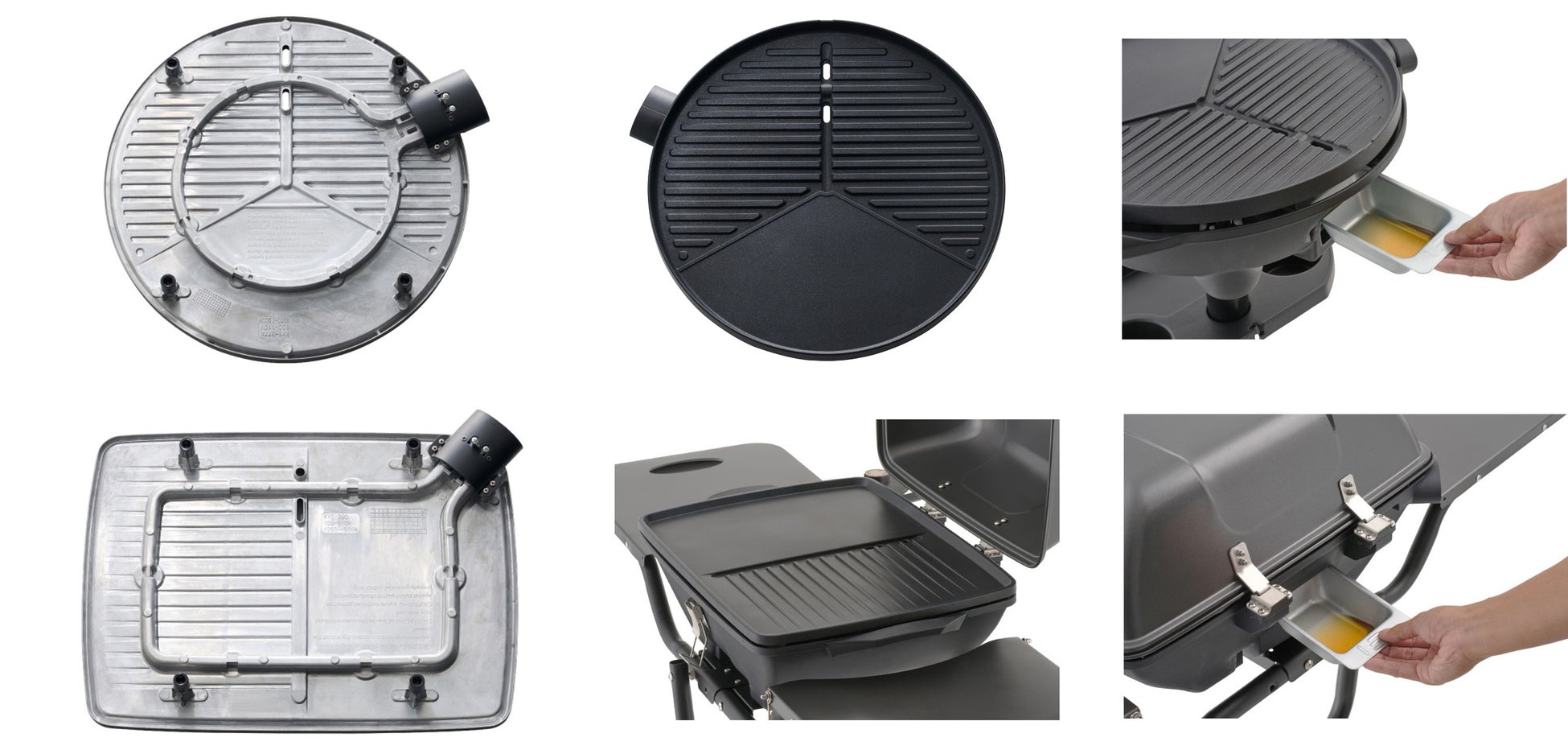 プレートに熱源が内蔵された熱源内蔵式調理プレートを採用しているため、短時間で温まるうえ、熱がダイレクトに伝わり、高火力で美味しく焼き上げられる。ダイヤル式コネクターで簡単に温度調節ができ、サーモスタット内蔵のため自動で温度を一定範囲内に保つことが可能。