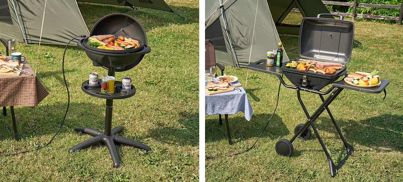 野外でも使用可能なAC100Vの電化製品「エレキャン」シリーズから新登場した、コンセントにつないでスイッチ1つで手軽にBBQができる電気式グリル。2014年の発売以降、大人気のロングセラーアイテム「エレグリル」に新型モデルがラインアップ。