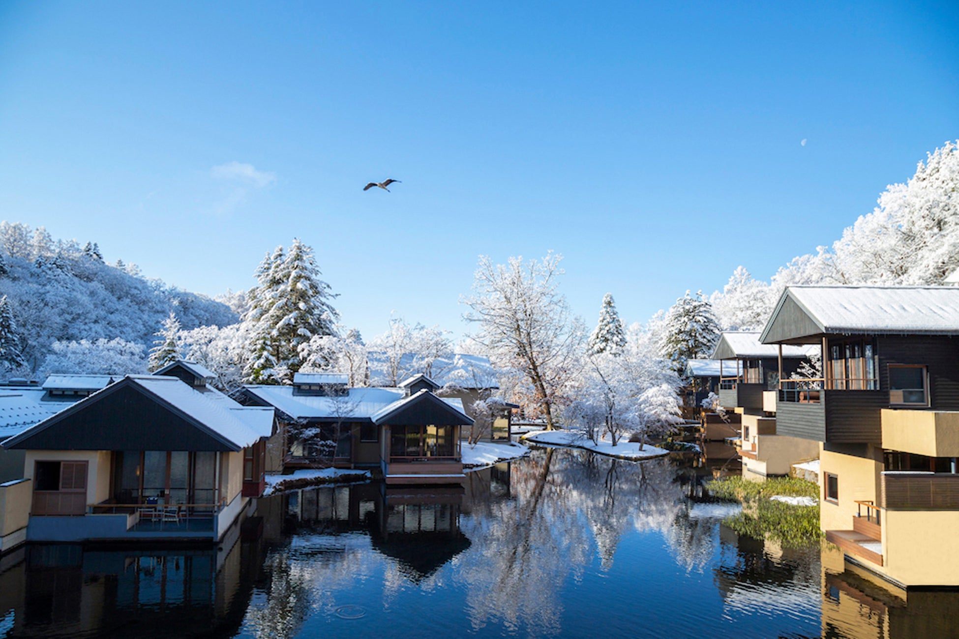 谷の集落に滞在する。離れの客室は水辺を囲み、テラスからは季節のうつろいが感じられます。「軽井沢野鳥の森」に面した豊かな自然環境にて、休息の時間を満喫できる滞在型の宿泊施設です。