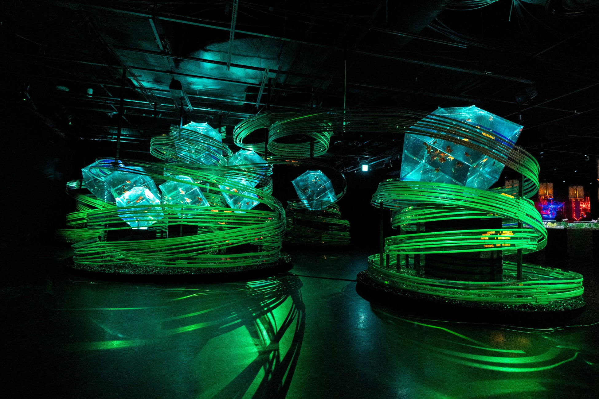 金魚泳ぐ水槽作品を光・香・音で演出する没入型エンターテインメントアート。