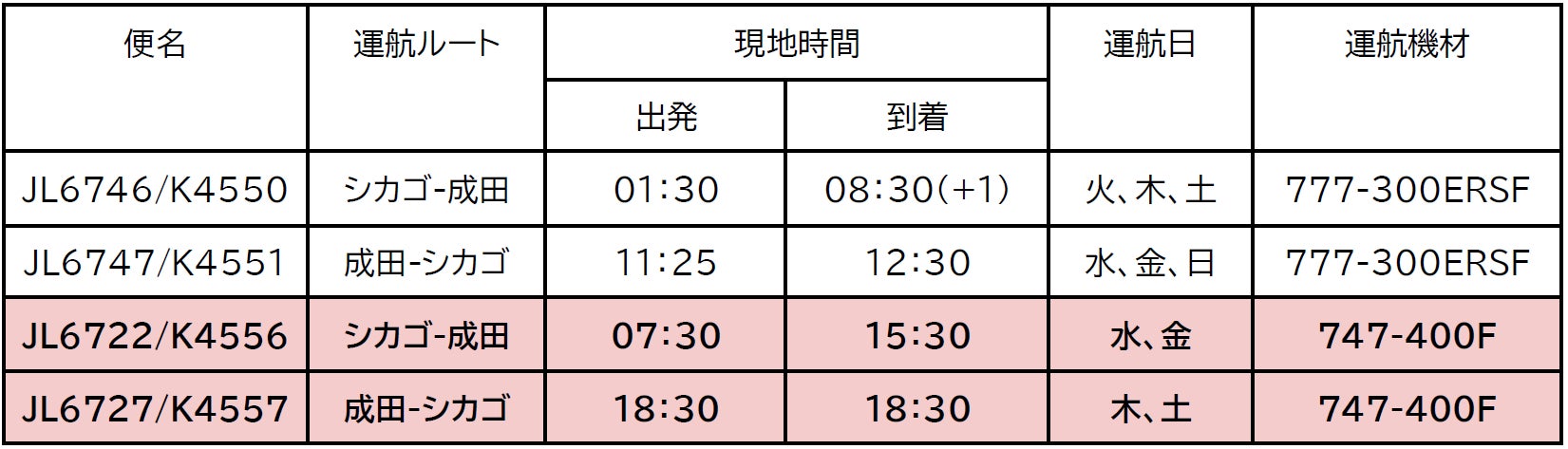*参考:2025年3月19日 JAL、成田-シカゴ線で貨物機・旅客機を活用した輸送ネットワークを増強