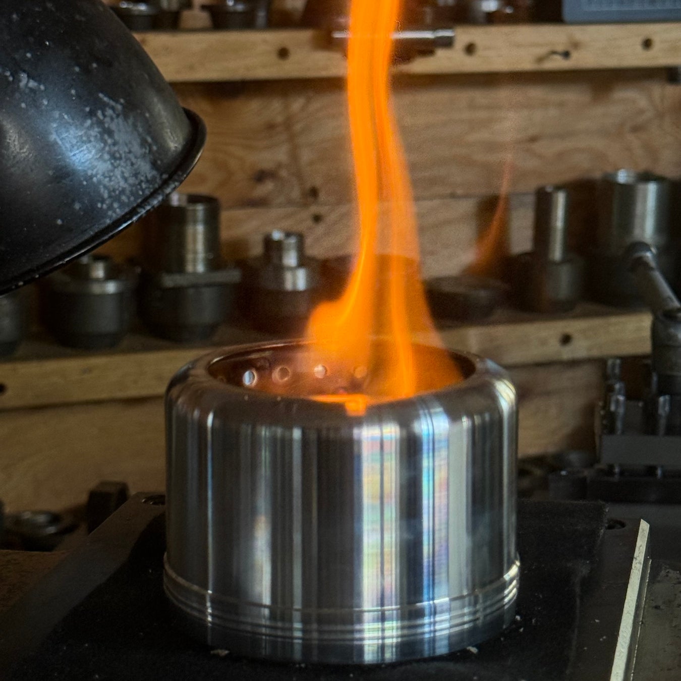 精密切削技術を活かし、ストーブやクッカーなどを自社で削り出して製作しています。