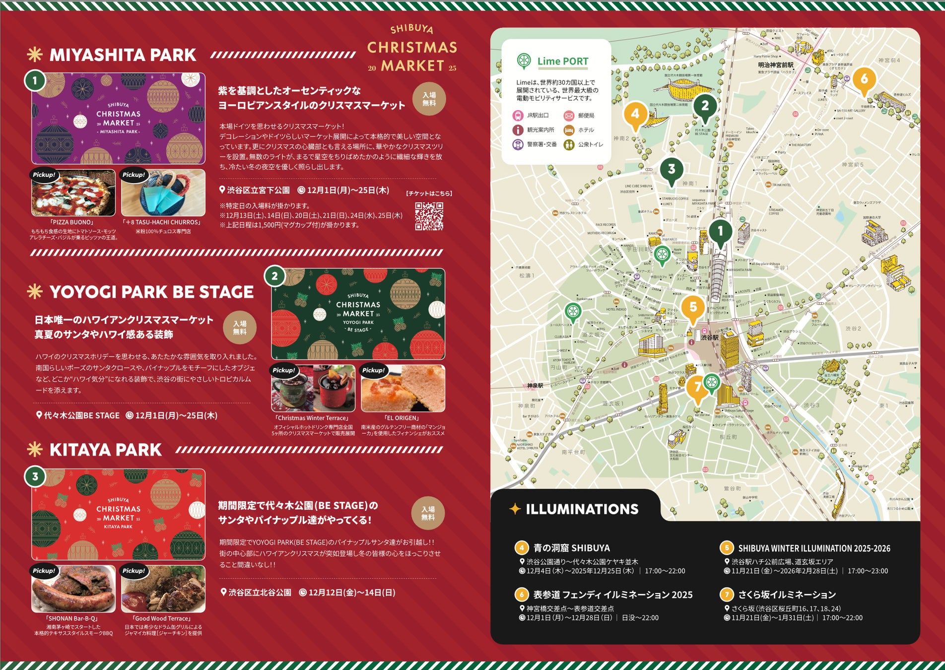 また、渋谷クリスマスマーケット実行委員会が発行するイベントマップにはLimeポートが掲載され、来場後の移動動線をよりわかりやすく案内し、安全と回遊性の双方を高める取り組みを行います。