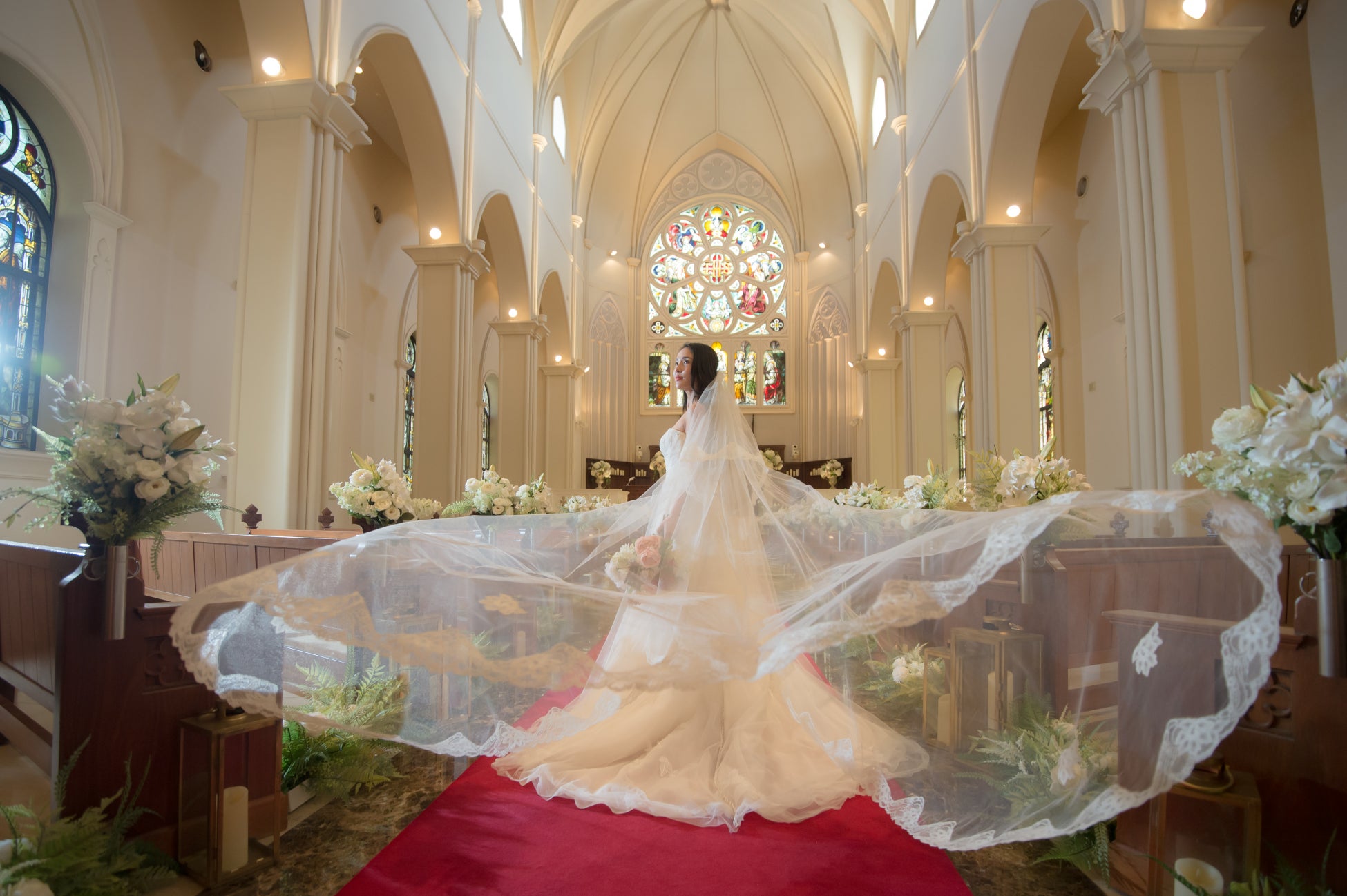 大聖堂・広々とした邸宅・緑溢れるガーデン・フラワーウォールなど多彩な撮影が叶います。