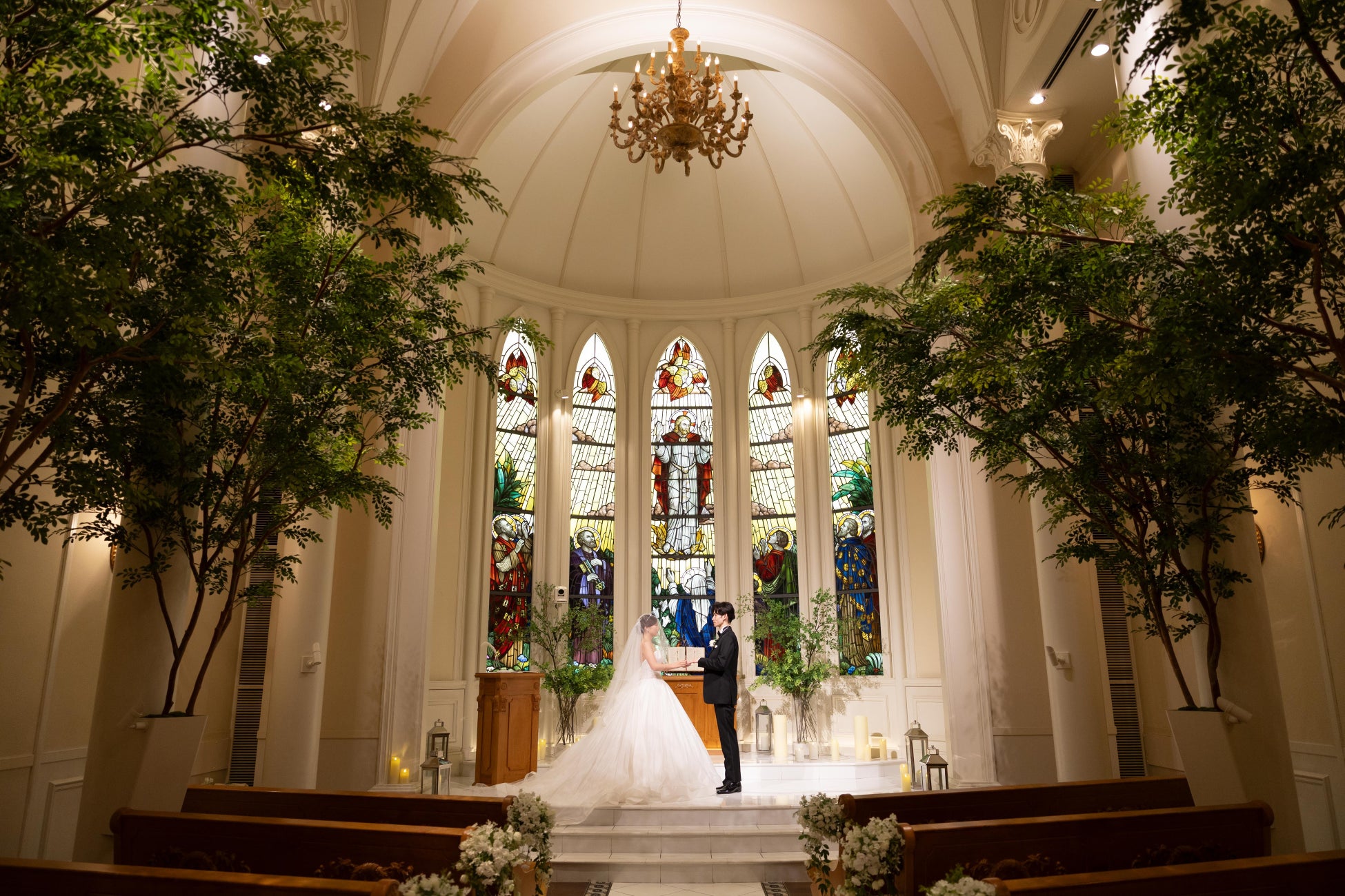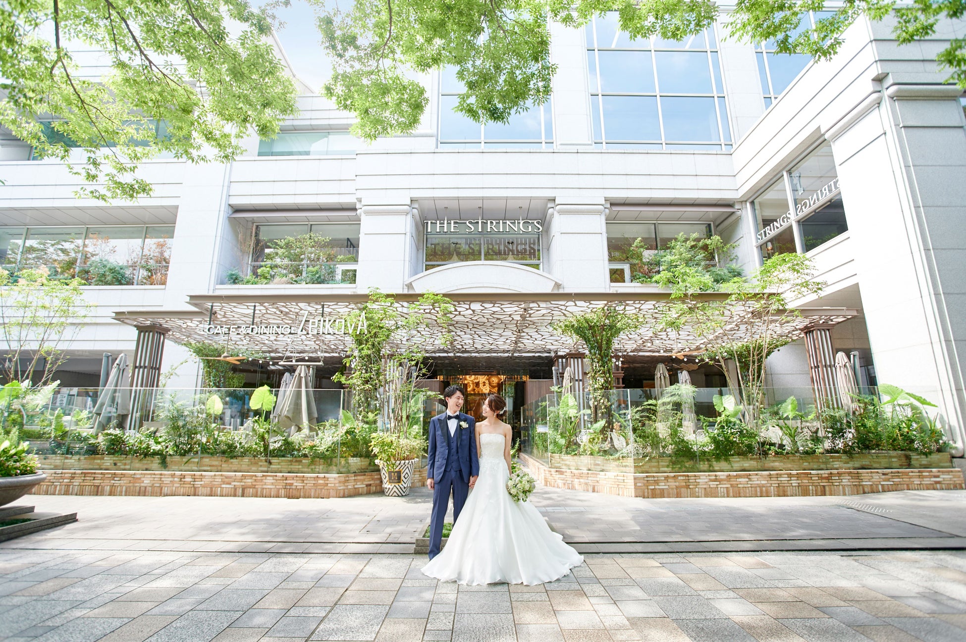 表参道駅直結の「ザ ストリングス 表参道」は、華やかなブランドショップが集まるエリア。ケヤキ並木がモチーフの木目基調で、落ち着きのあるデザイナーズチャペルが大人の雰囲気を醸し出します。