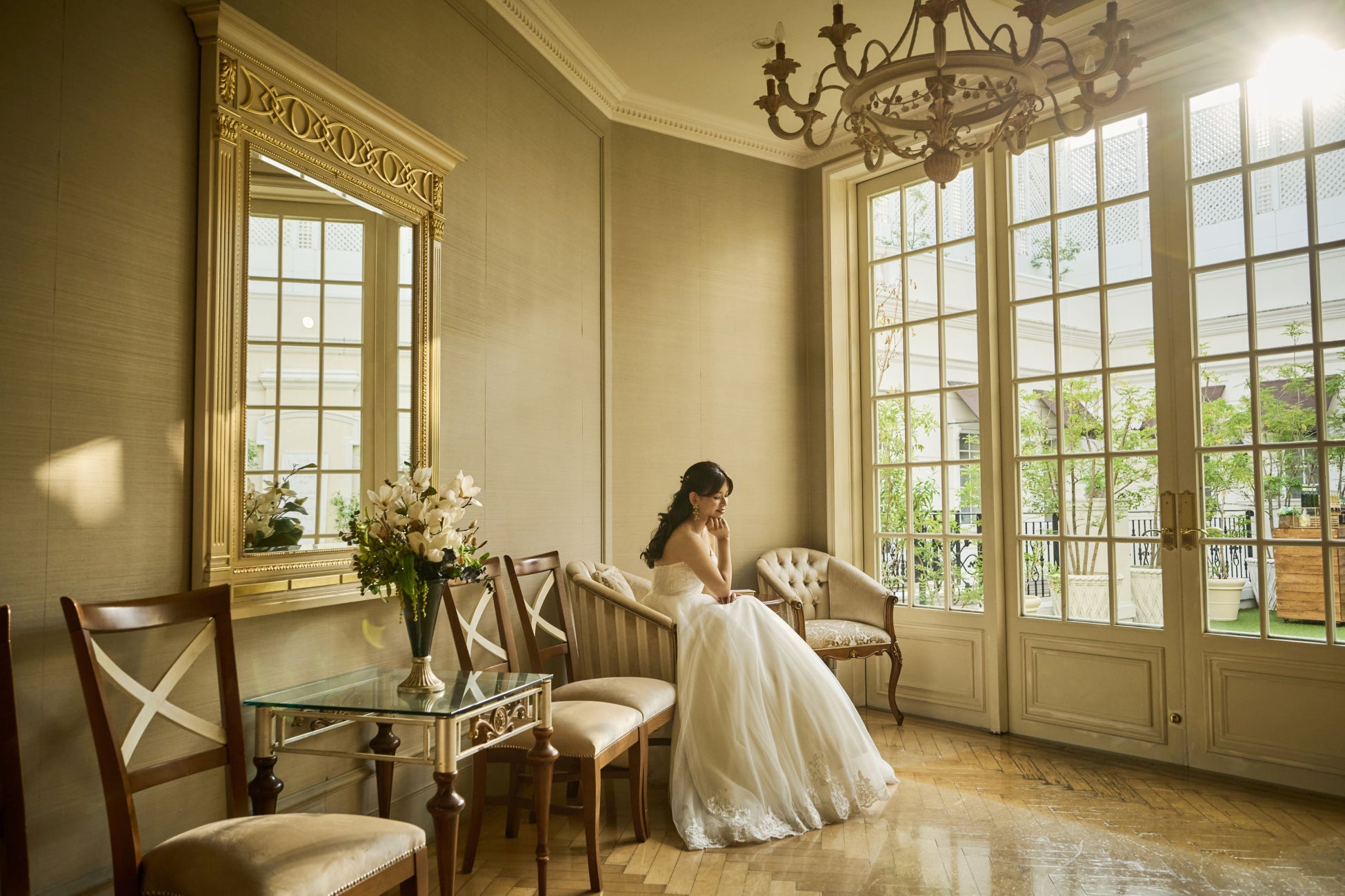 新たに本格展開する「邸宅スタジオ」では、チャペルをはじめ、海外を思わせる邸宅空間、自然光が降り注ぐガーデンや和庭園など、結婚式当日さながらの雰囲気の中で撮影をお楽しみいただけます。従来のスタジオでは実現しづらかった“光をまとった一枚”や、ドラマティックな邸宅ならではのフォトジェニックなカットも叶い、和装・洋装どちらのスタイルにも美しく調和する多彩なロケーションをご用意しております。