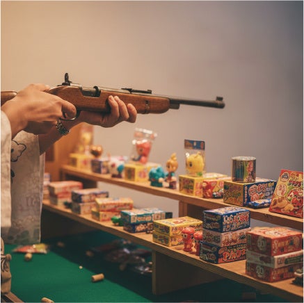 射的・輪投げ・スーパーボウルすくいなど、昔ながらの遊びが楽しめるブースが並びます。景品をかけた真剣勝負に盛り上がったり、童心に返って夢中になったりと、年齢問わず遊べる縁日イベント。