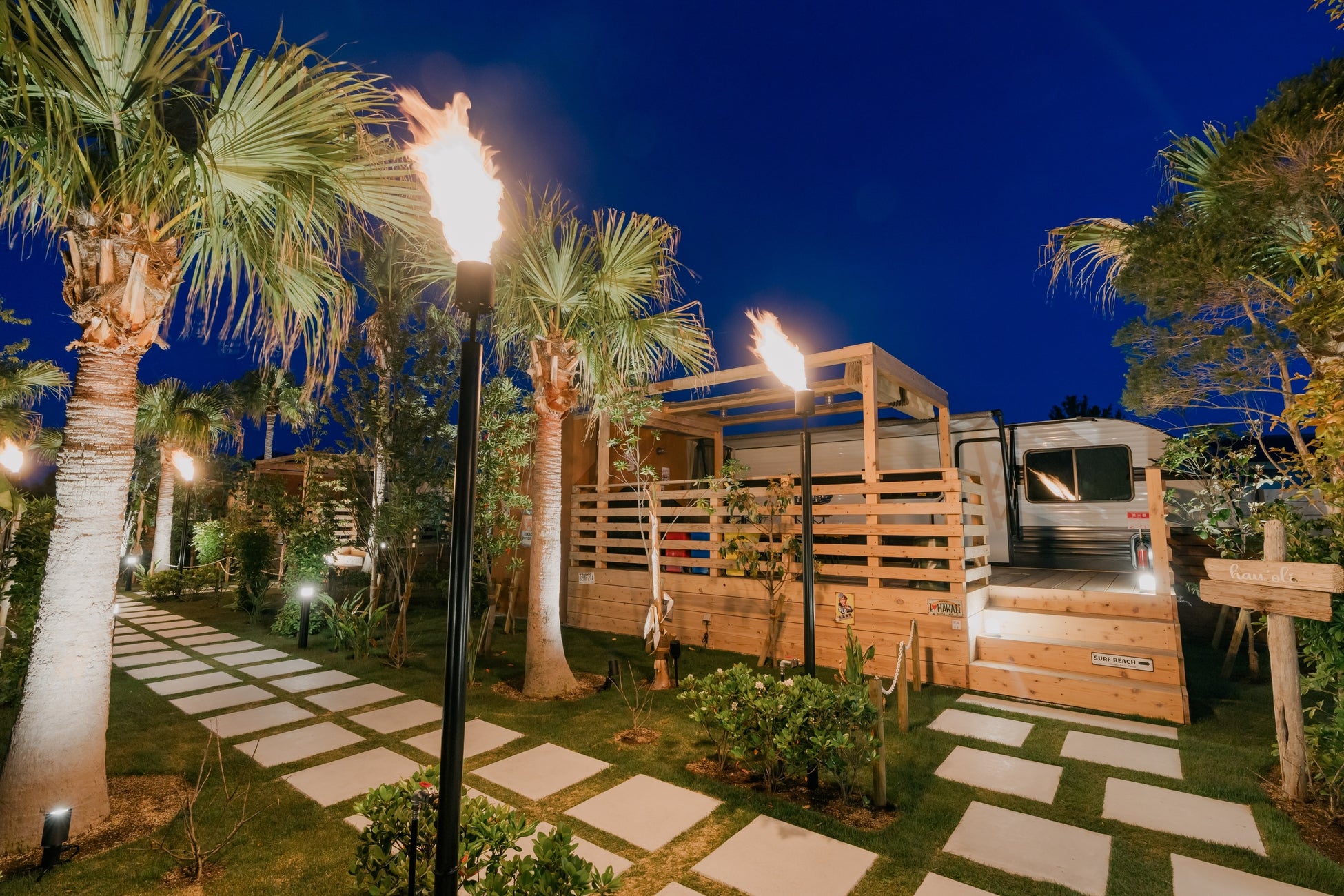 ヤシの木やガス灯に囲まれた幻想的な雰囲気で、開放的なリゾートステイを満喫できます。