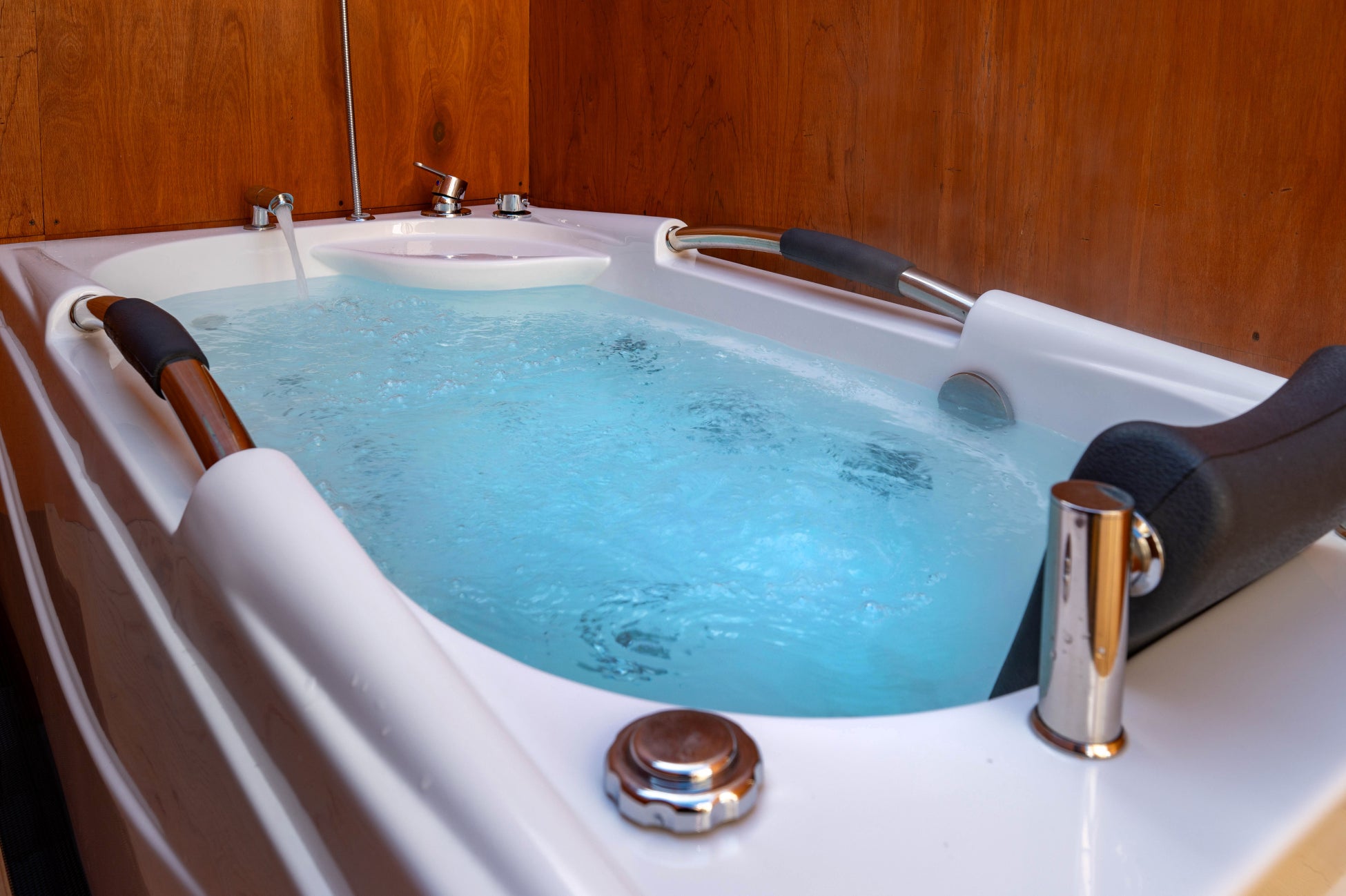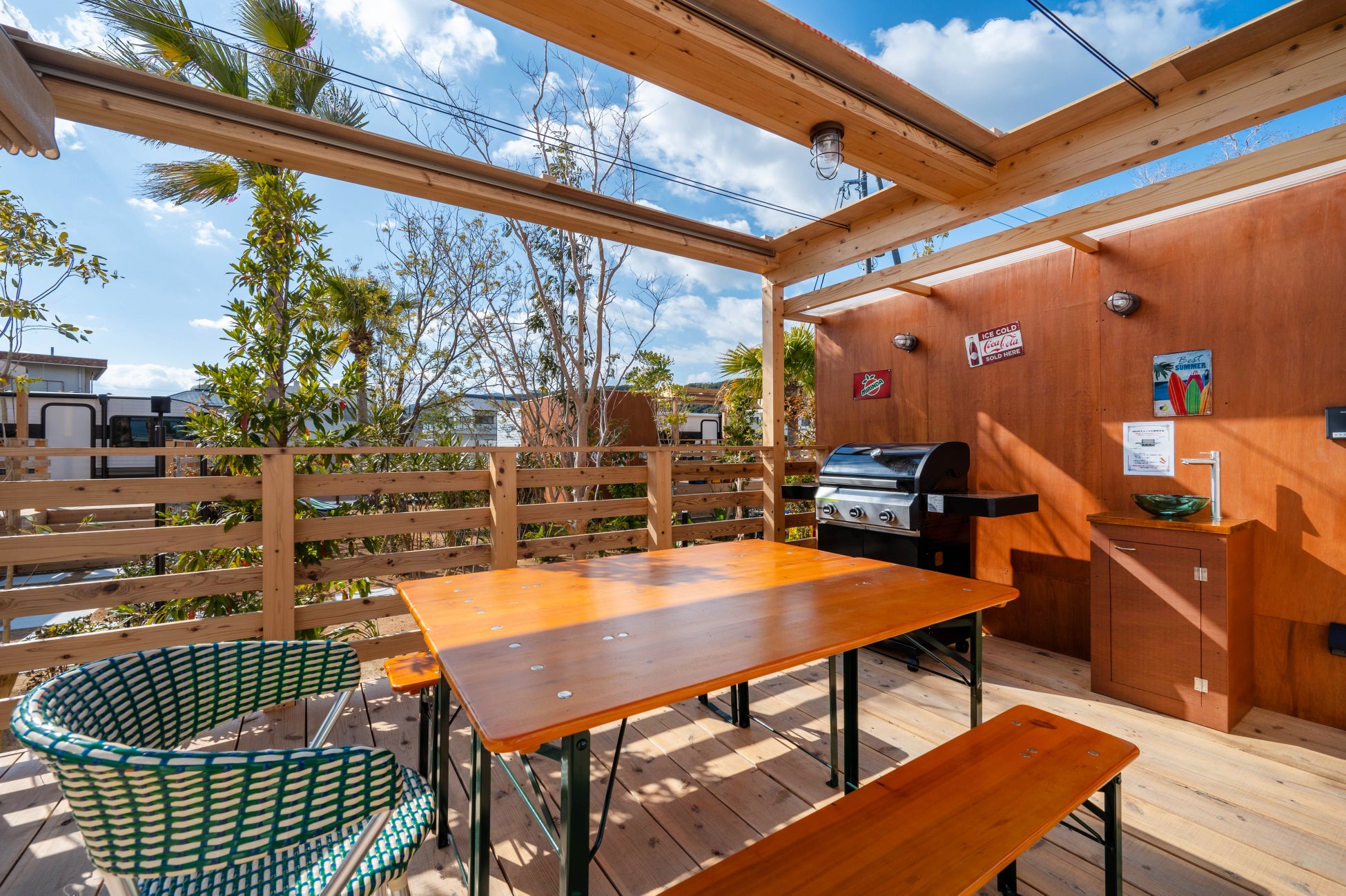 各トレーラーには、屋根付きの専用BBQテラスがあり、天候を気にせず仲間やご家族と楽しい食事のひとときを過ごせます。さらに専用の屋外ジェットバスも備えており、星空の下で水の心地よさに包まれる贅沢な時間をお楽しみいただけます(水着着用/管理事務所にて販売あり)。