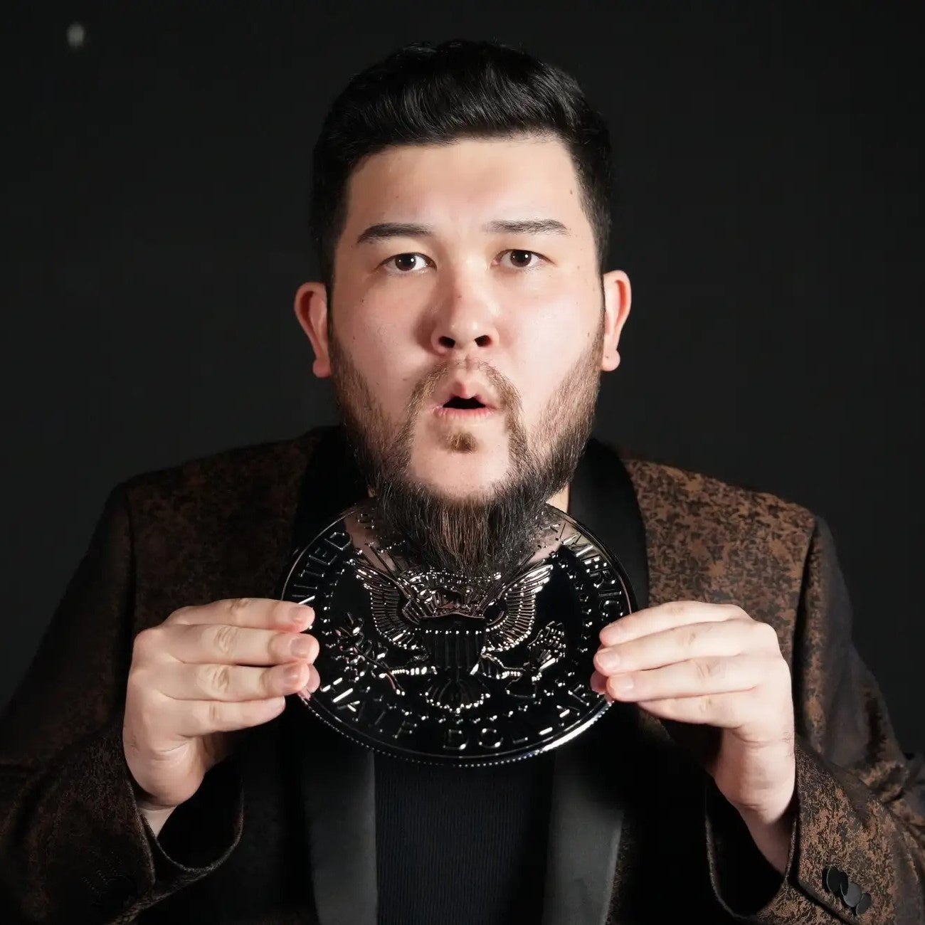 185㎝の巨躯、日本人離れしたヒゲ、足は29㎝の圧倒的なサイズとは対照的な繊細な指先で洗練されたマジックを行う。