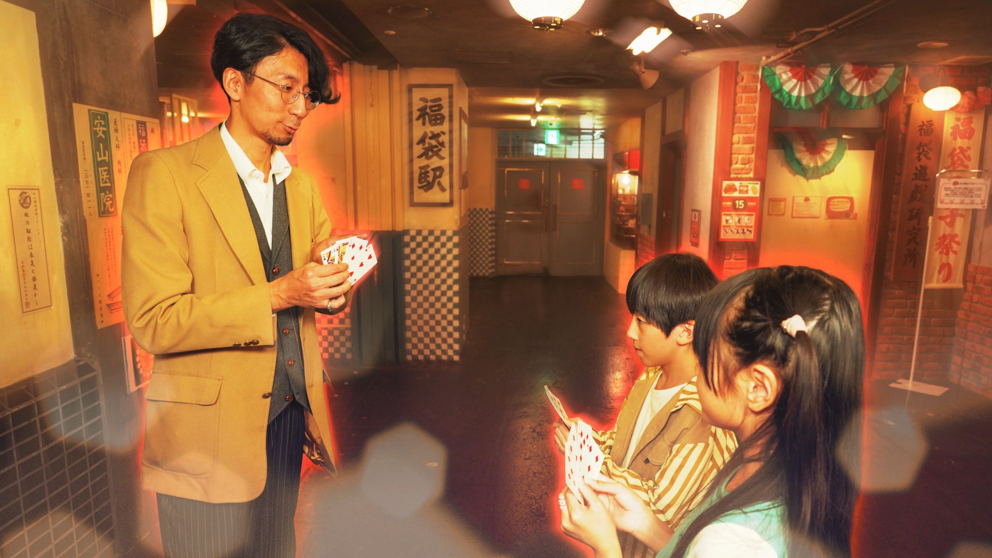 池袋の屋内型テーマパーク「ナンジャタウン」では、魔術王国の国王・SHINGO率いるマジシャンたちが神出鬼没にマジックを披露しては、フェスタリアン※を驚かせていた。