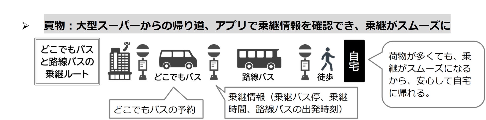 今回の新機能により、利用者はアプリひとつで「どこでもバスのみのルート」「路線バスのみのルート」「どこでもバス+路線バスの乗継ルート」など複数の移動ルートをまとめて比較し、希望に合わせて“えらべる”ようになります。さらに、どこでもバスは検索後そのまま予約まで完結します。
