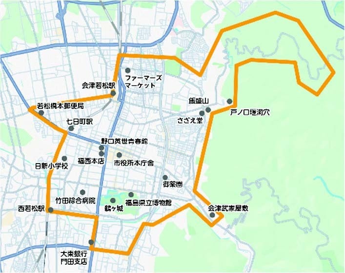 会津若松市中心部に400ヶ所以上の乗降場所(既存バス停+仮想バス停)を設定しており、自宅や目的地により近いバス停で乗降車が可能
