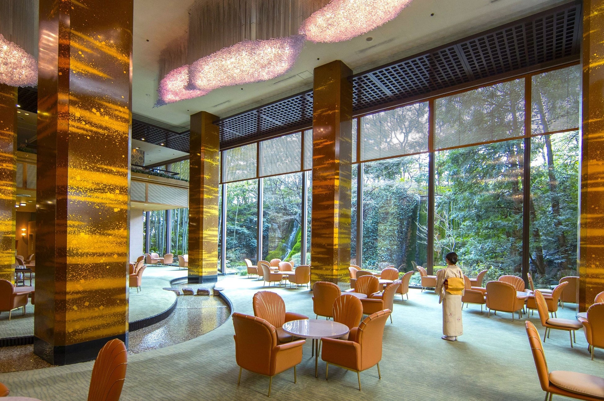 春の庭園を望むメインラウンジで、いちごの甘い香りに包まれる至福のひとときをお過ごしください。