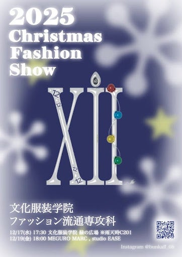 学生主体のファッションショー「XII」は、「時間」「記憶」「つながり」をテーマに4つの世界観で構成されるクリスマスショー。企画・制作・演出・運営まで学生が担い、“想いをつなぐ”共創のステージを届けます。