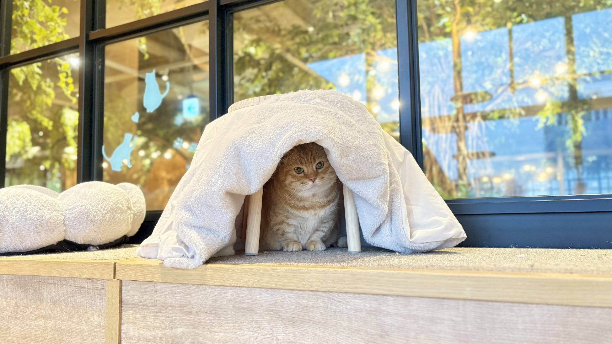 カワスイのソラネコカフェに猫用こたつが設置されました。