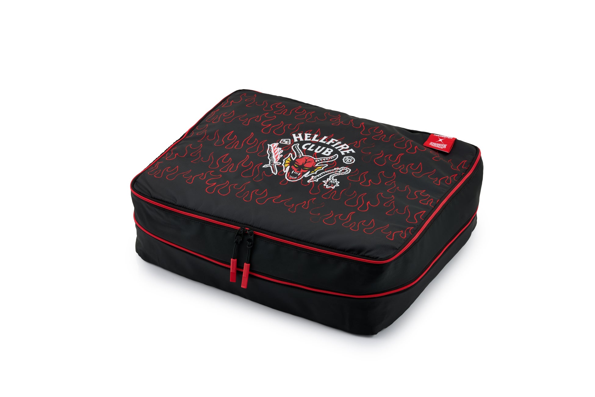 Hellfire Club のロゴを配したコンプレッション仕様のパッキングキューブ。旅の必需品から“討伐装備”まで、荷物をコンパクトにまとめることができます。