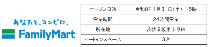 「ファミリーマート」では、市中店舗と同様に、コーヒーやフラッペの「FAMIMA CAFÉ」、定番の「ファミチキ」をはじめとしたホットスナック、「おいしい◎うれしい◎あんしん◎」ファミマのプライベートブランド「ファミマル」商品各種に加え、高速道路の店舗として坂東市の名産品である「将門煎餅」など地域のお土産商品も取り揃えます。