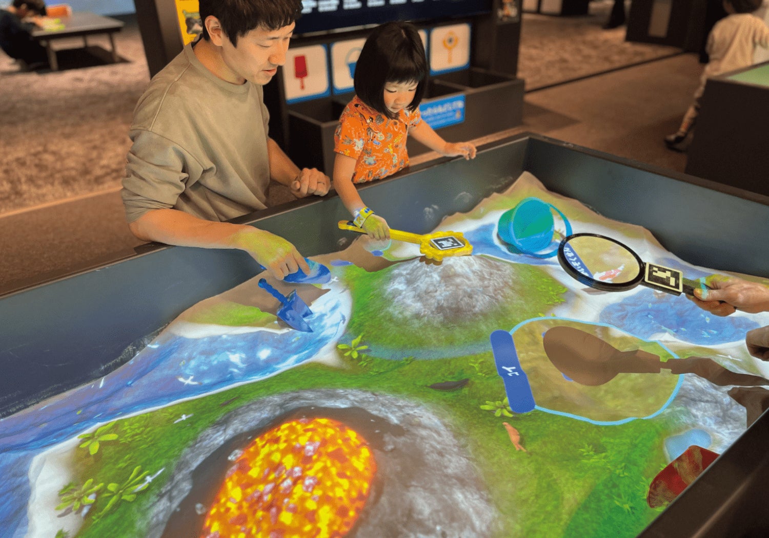 プロジェクションマッピングを駆使した没入型ボールプール「ZABOOM JOURNEY(ザブーンジャーニー)」やAR(拡張現実)を使った砂遊び「SAND PARTY!(サンドパーティ)」、デジタル大縄跳び「DINO JUMPING(ディノ ジャンピング)」など、昔からある遊びにテクノロジーが融合した12種のアトラクションを体験することができます。