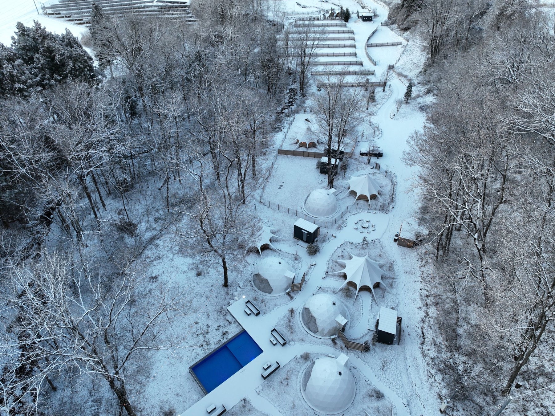冬季に雪が降り積もる自然豊かなグランピング&キャンプリゾート。サウナ室温と外気温の寒暖差100℃を超える期間限定アクティビティをお楽しみください。
