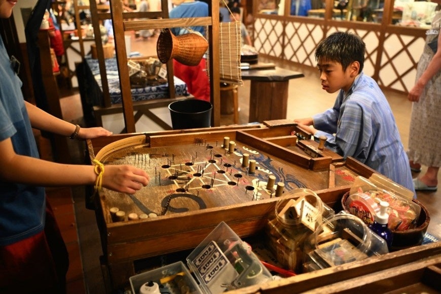 館内1階「阿波の國」では、縁日遊びや駄菓子屋さん狸堂、大谷焼の絵付け、江戸時代から伝わる“天然灰汁(あく)発酵建て” 阿波本藍染めなどのご当地プログラムが体験できます。