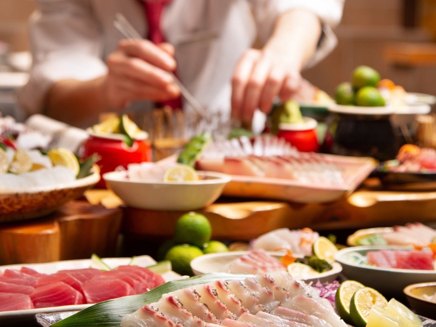 鳴門鯛や阿波野菜ほか渦の幸グルメは、郷土料理バイキング阿波三昧、フレンチ会席、和会席、炭火焼、絶景カフェなど個性的な5つのレストランでご堪能いただけます。