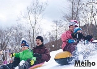 めいほうスキー場の大きな魅力は、大規模なスノーランドです。エリア内には、ムービングベルト(スノーエスカレーター)が設置されており、チュービングコース、スノーストライダー等の雪遊びスポットが充実しています。チューブやソリ、スノーストライダーのレンタル代も入場料に含まれており、お得にご利用いただけます。また3歳から6歳のキッズを対象としたスクールBURTONKID’S RIGRET PARKや、ファミリー向けレストラン、託児所などの施設もあり、小さなお子様がいらっしゃるお客様も1日ゆっくりお過ごしいただけます。