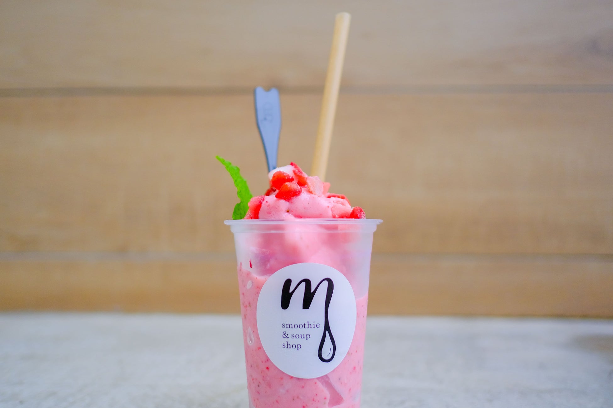 併設しているスムージーショップ「mellow」で大人気の春限定のイチゴスムージーも是非ご賞味ください。※ご宿泊のお客様は100円割引。