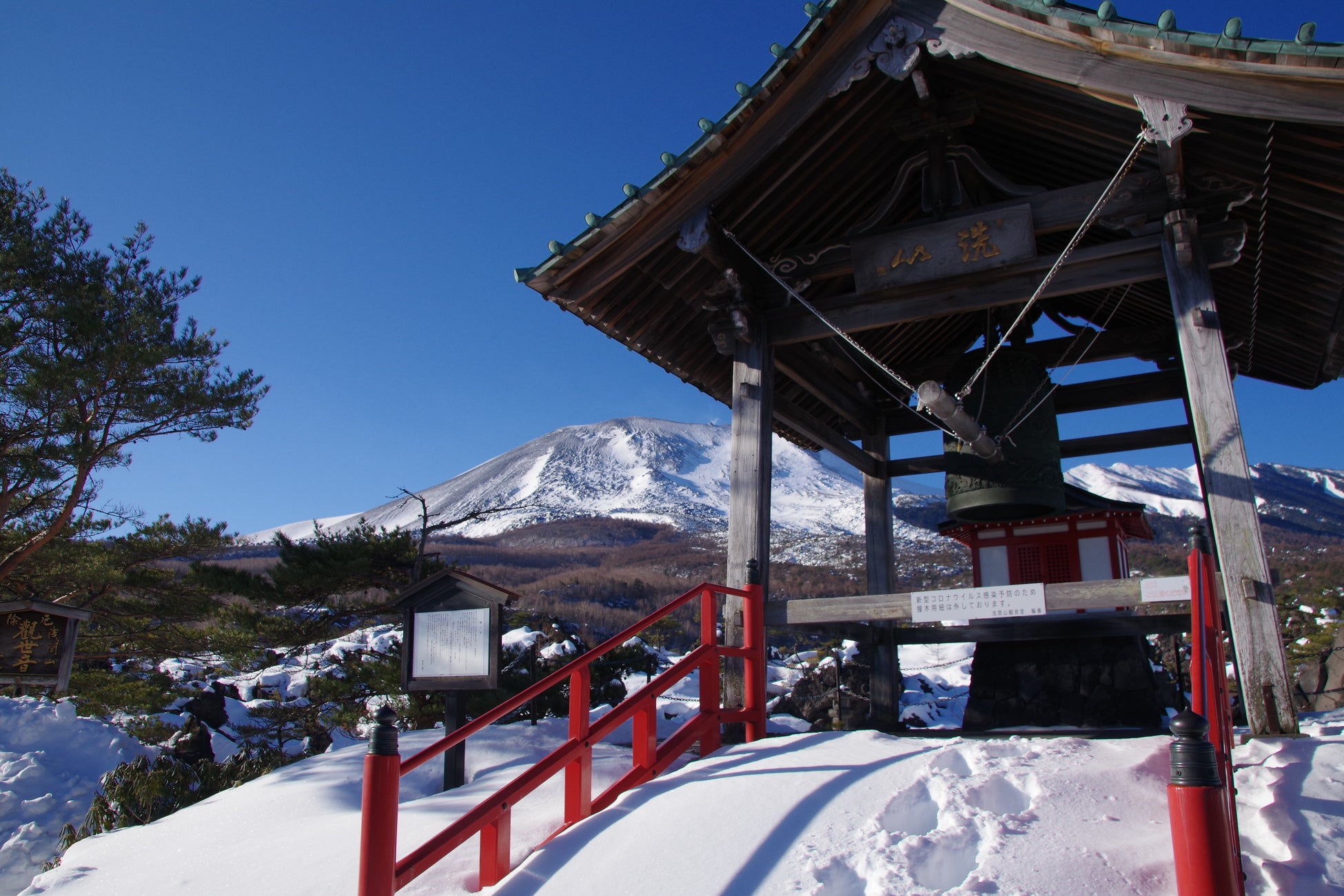 元日のみ6:30A.M.より営業を開始し、浅間山観音堂の舞台から初日の出を礼拝していただけます。また、先着100名さまに甘酒(ノンアルコール)の振る舞いや鐘楼堂では雄大な浅間山に向かって鐘撞きを体験していただけます。凛とした空気の中に響く荘厳な鐘の音に耳を澄ませ一年のご多幸をご祈願ください。