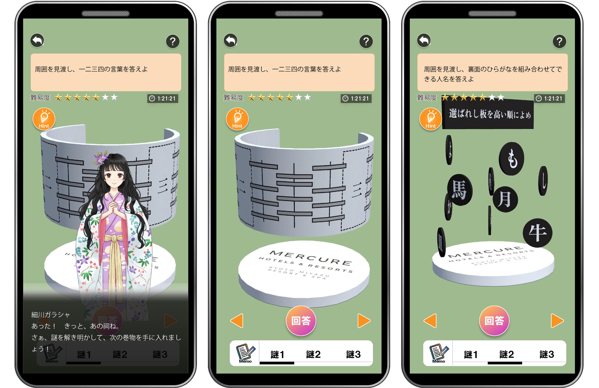 メルキュール京都宮津リゾート&スパの謎解きでは、タイムスリップしたお客様は丹後七姫のひとりであるガラシャと共にホテル内を歩き、周囲の景観をヒントに謎を解き明かしていきます。ホテル内を丹後国に見立て、丹後に伝わる丹後七姫の伝説について触れながら、歴史の舞台とホテル空間を重ね合わせた世界観を体験していただきます。「姫君の物語」を求め、ホテルの各所に設置された謎を解くことで、まるで丹後各地(伊根、磯砂山、立岩、磯の浜辺、由良の湊)を巡るような感覚を楽しめます。