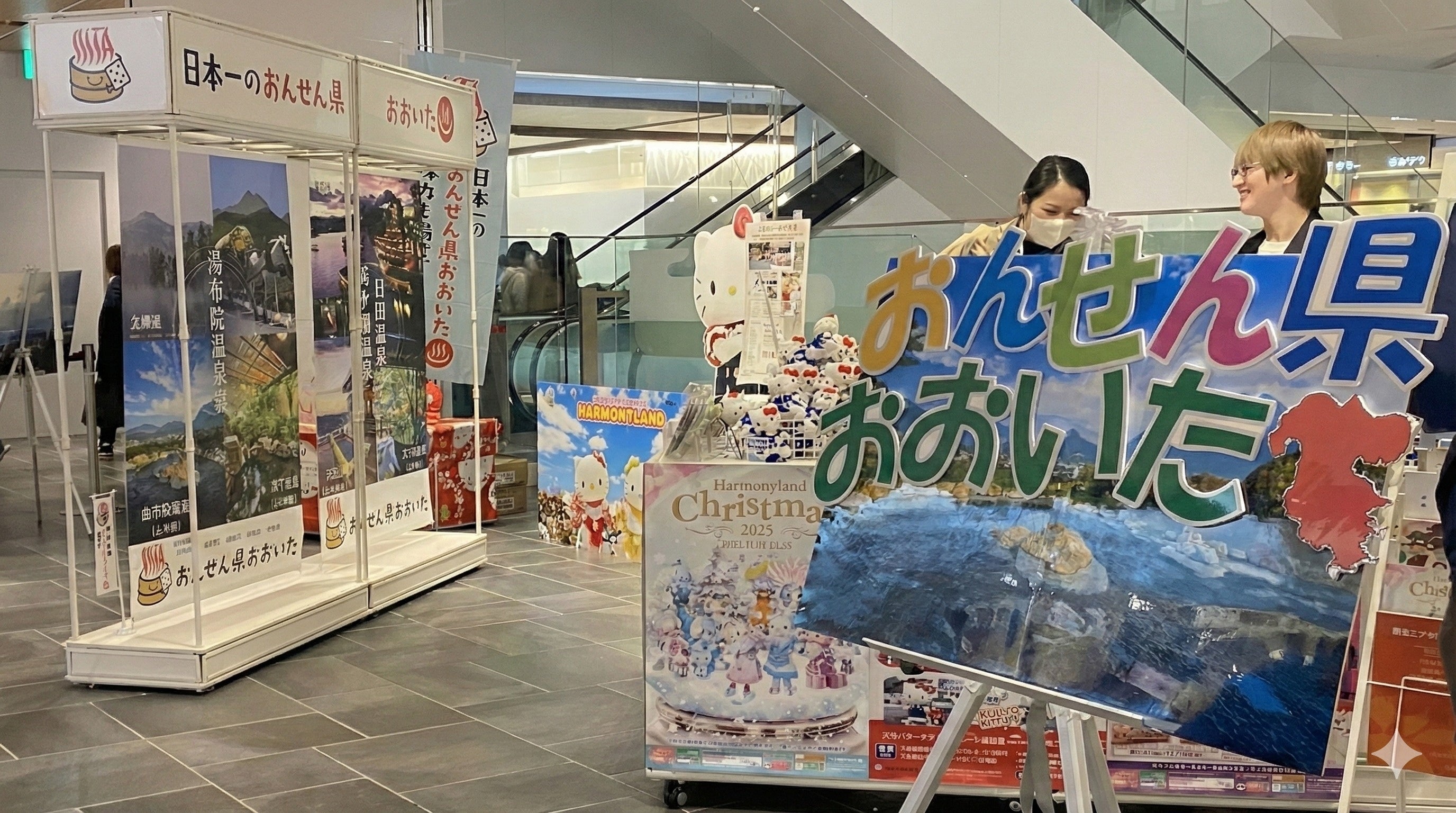 「日本一のおんせん県おおいた」の魅力を関西エリアに届けることを目的に、大分県大阪事務所が主催したPRイベントです。会場となったKITTE大阪では、温泉地紹介、ガチャキャンペーン、特産品販売、乾しいたけのつかみ取り、アンケート回答者への泉州タオル配布など、多彩な企画が展開され、2日間を通して多くの来場者で賑わいました。