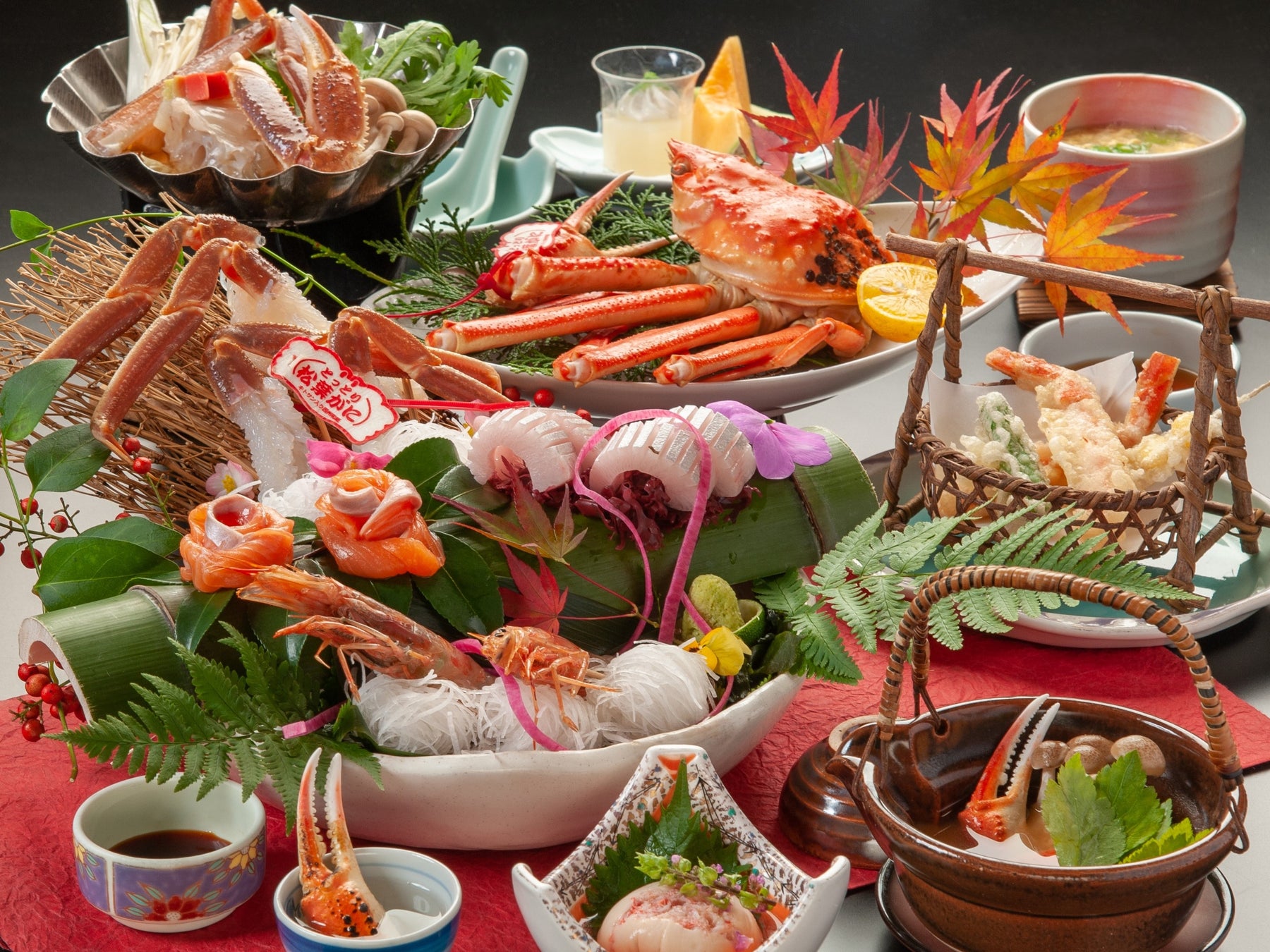 タグ付き活松葉蟹を使ったカニ料理フルコースをはじめ、2026年3月までの期間限定で、ご希望に合わせ4タイプの蟹料理プランをご賞味いただけます。