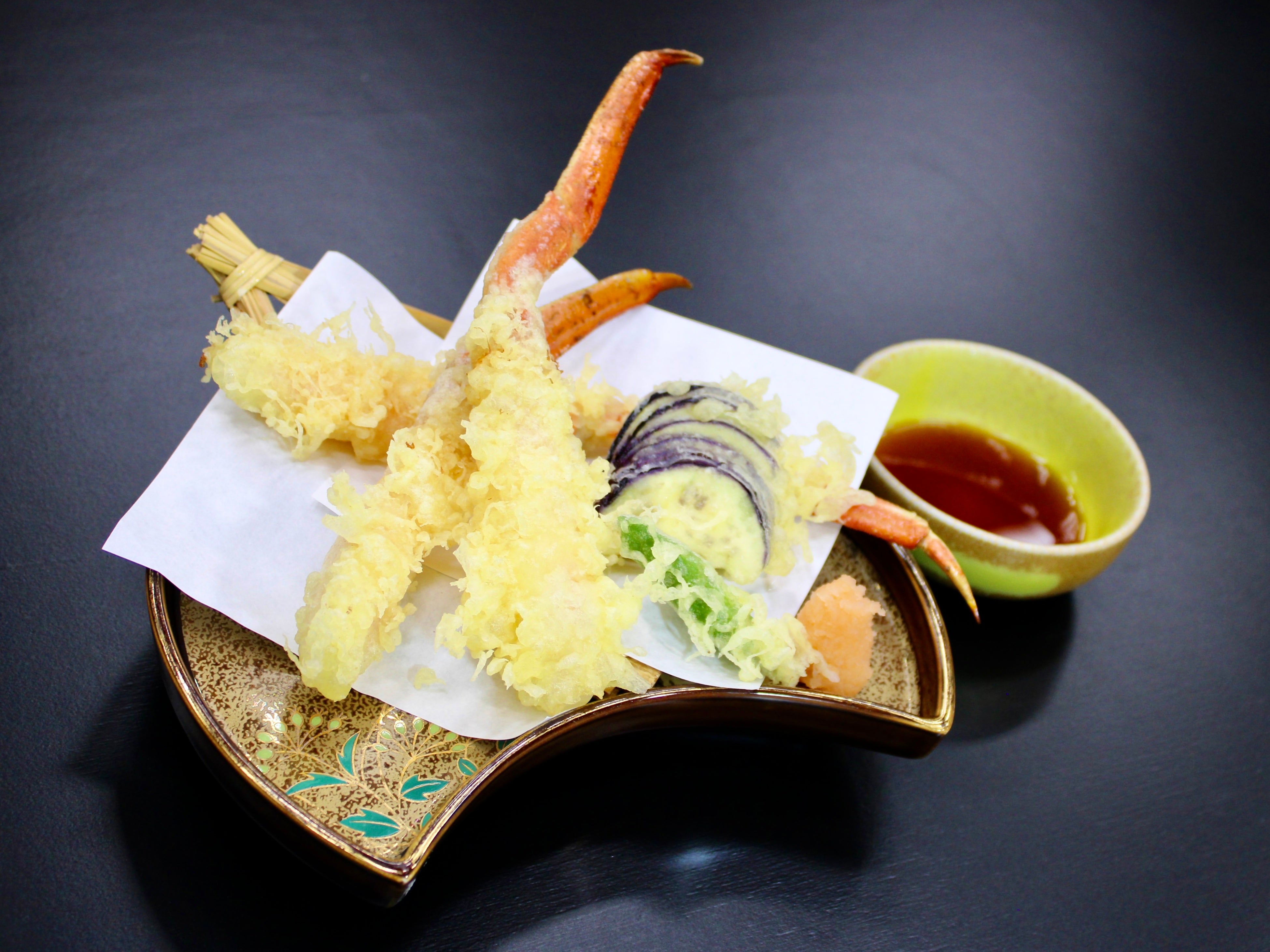 ・自家製梅酒 ・蟹豆腐 ・海鮮お造り三種盛り ・和牛すき焼き風小鍋 ・茹で蟹(半枚)  ・季節の天婦羅 ・和牛炙り握り ・日替り清汁 ・香の物三点盛り ・三朝町産きぬむすめ ・デザート二種盛り
