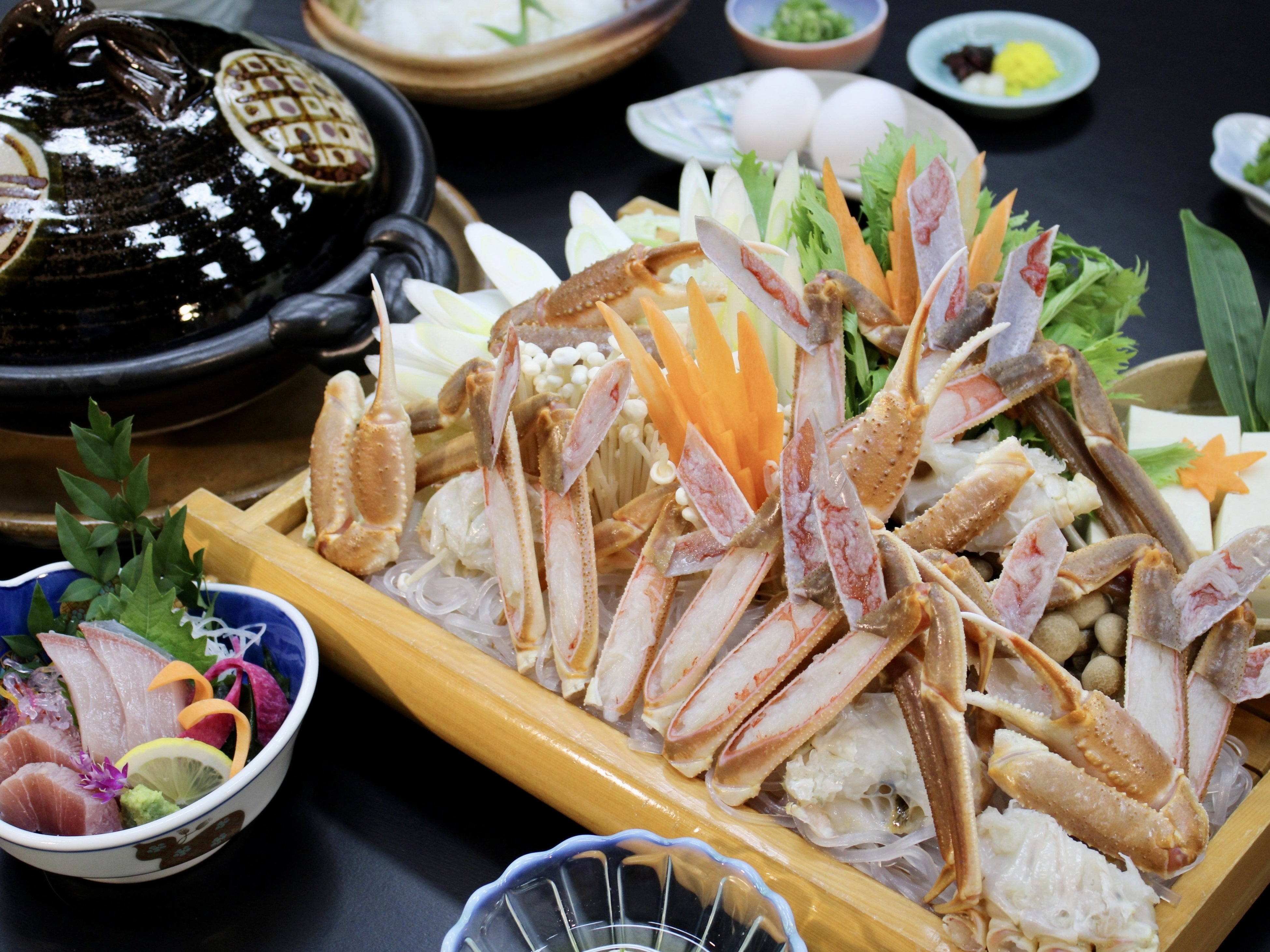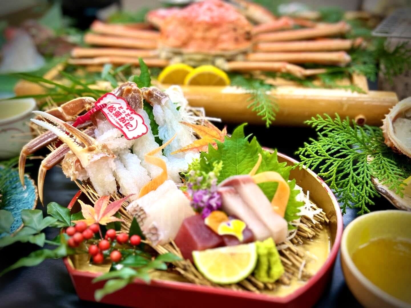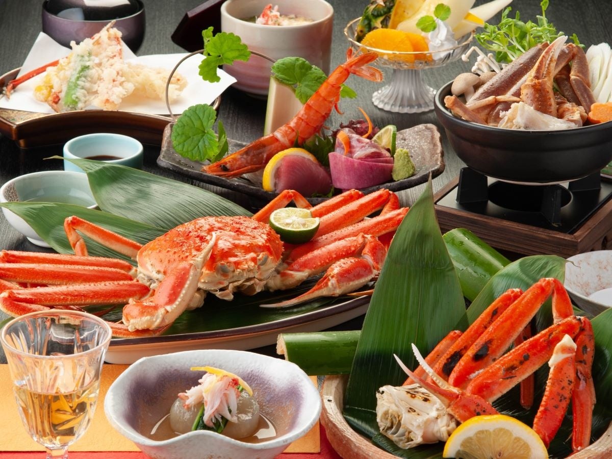 タグ付き活松葉蟹を使ったカニ料理フルコースをはじめ、2026年3月までの期間限定で、ご希望に合わせ4タイプの蟹料理プランをご賞味いただけます。