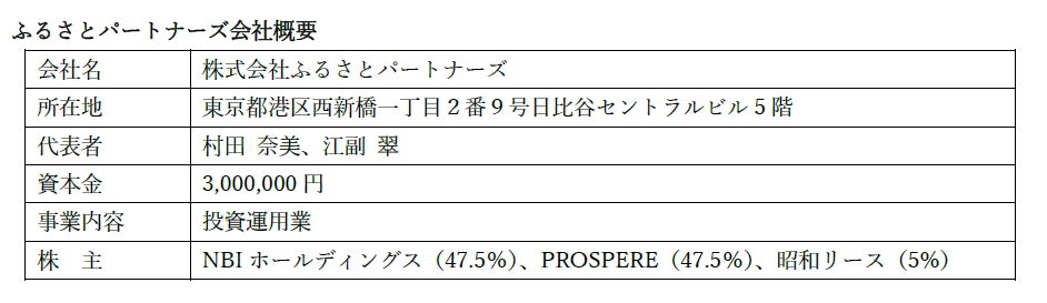 「不動産を軸としたアプローチ」のNBIホールディングスに、「企業投資を軸としたアプローチ」をするPROSPERが加わることにより、両社の地方創生のコンセプトが融合し、更には両社のパイプラインが合わさることにより早期に資産規模が拡大し、地方活性化に資するREIT組成の蓋然性がより高まると考え、今回の「ふるさとパートナーズ」の設立に至りました。