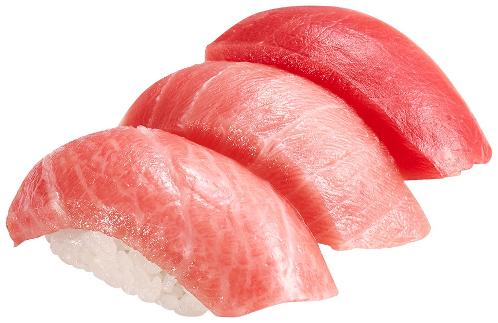 養殖の本鮪を使用。赤身、中とろ、大とろを一皿で楽しめる満足度の高い商品