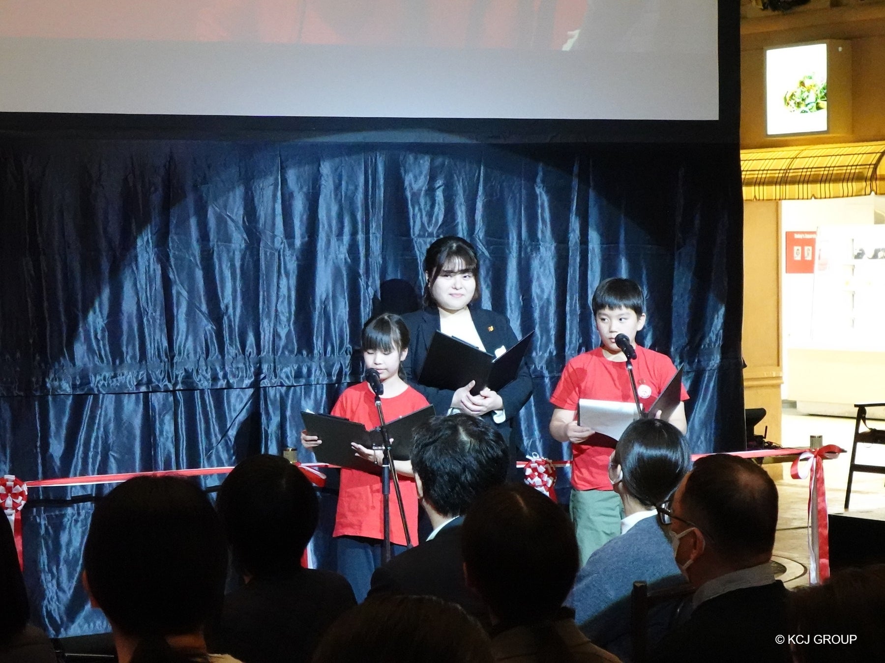 キッザニア甲子園に「ホテル」パビリオンがオープンしたことを祝して、テープカットを行いました。掛け声を受け、登壇者がテープに鋏を入れた後は、会場が大きな拍手に包まれました。