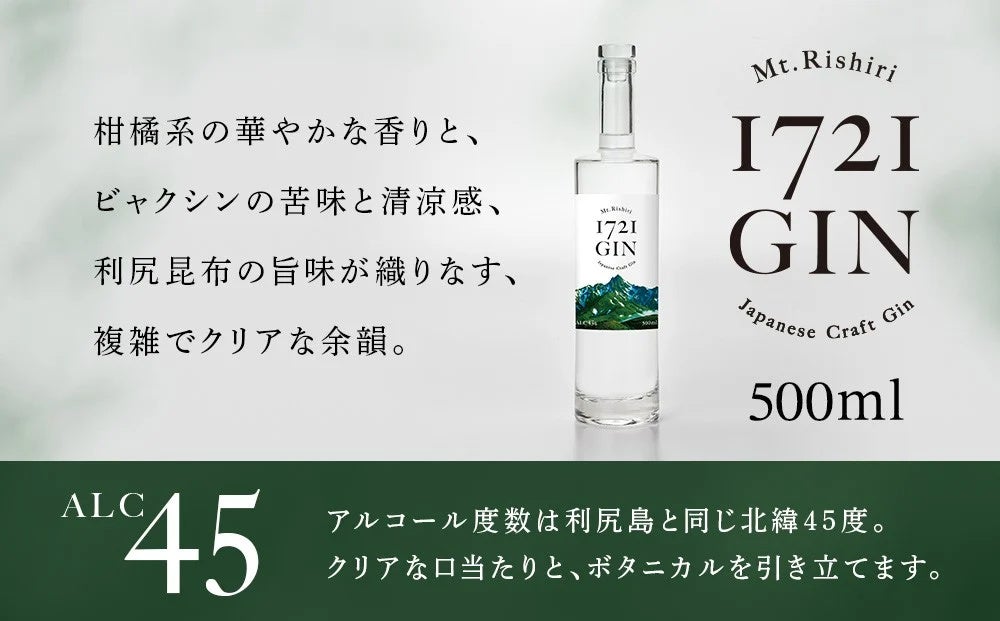 商品名:Mt.Rishiri1721Gin(読み:マウント・リシリ・イチナナニイチ・ジン)