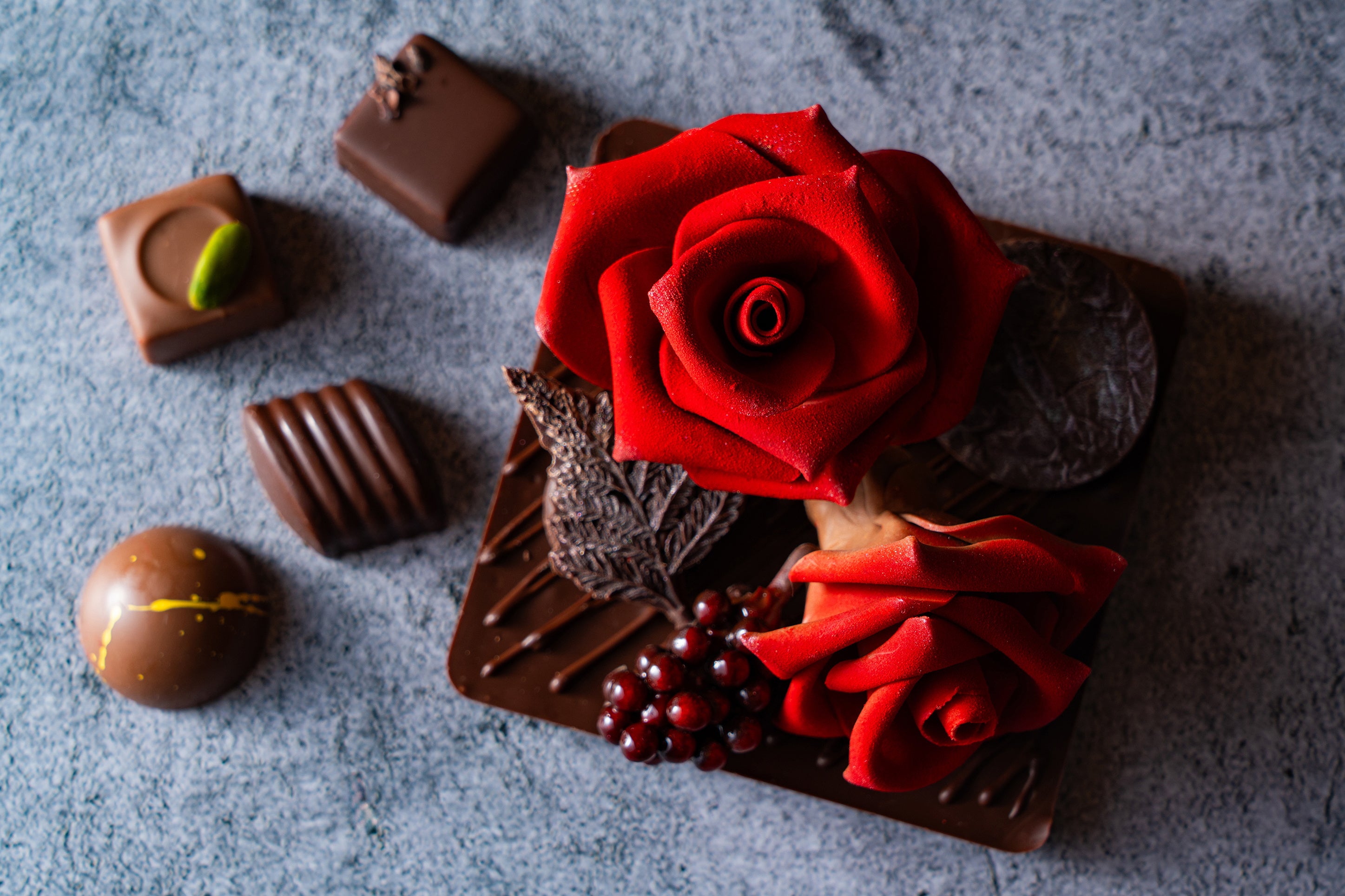 バラのエレガントな見た目、コク深い味わい。見て楽しい、食べて楽しい華やかなバレンタインをお過ごしください。