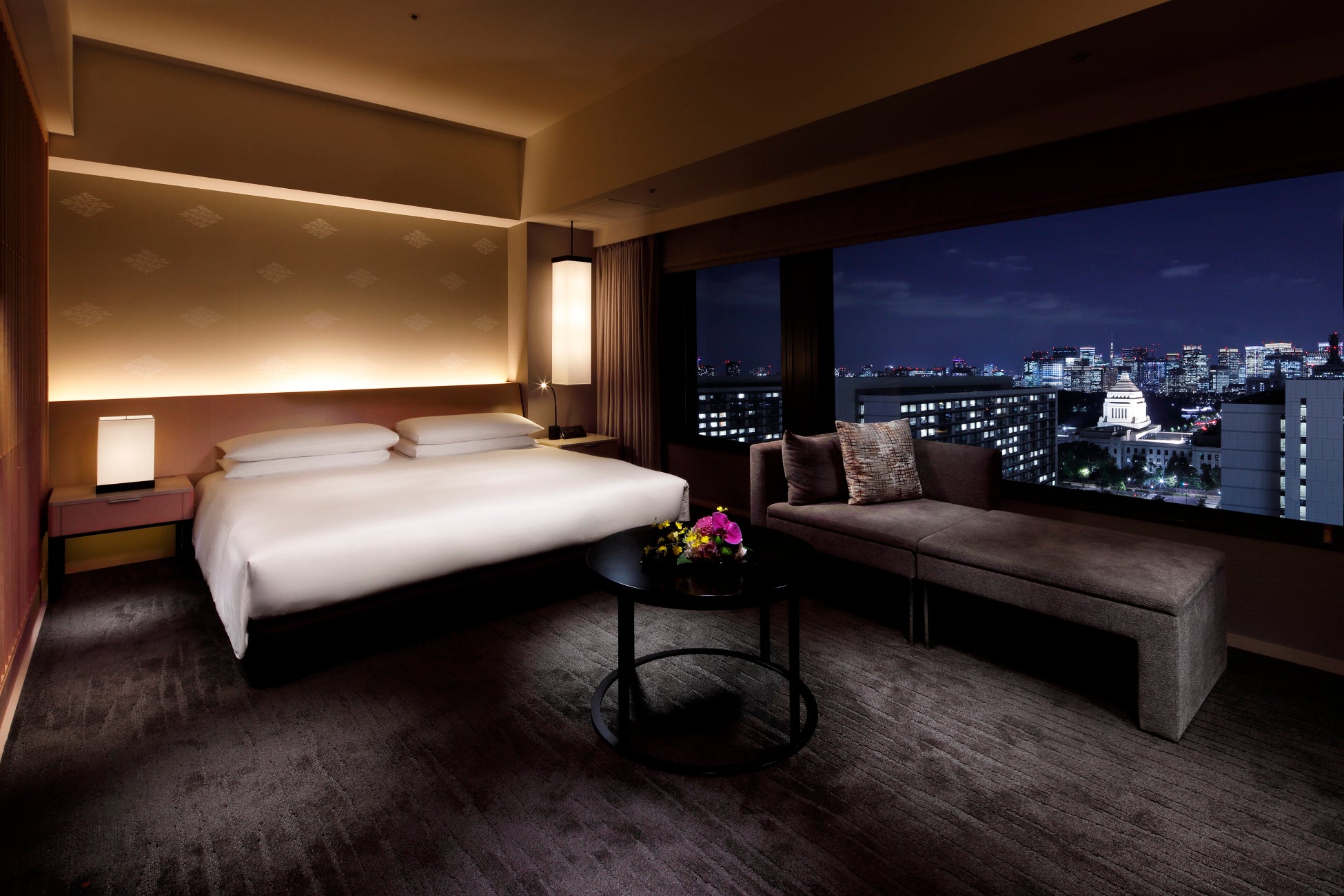 日本の伝統的な建築様式を取り入れ、障子や襖をしつらえた洗練された和モダンな空間が和らぎの時間を演出します。窓からは、国会議事堂をはじめとする東京の街並みを見渡すパノラマビューがお楽しみいただけます。