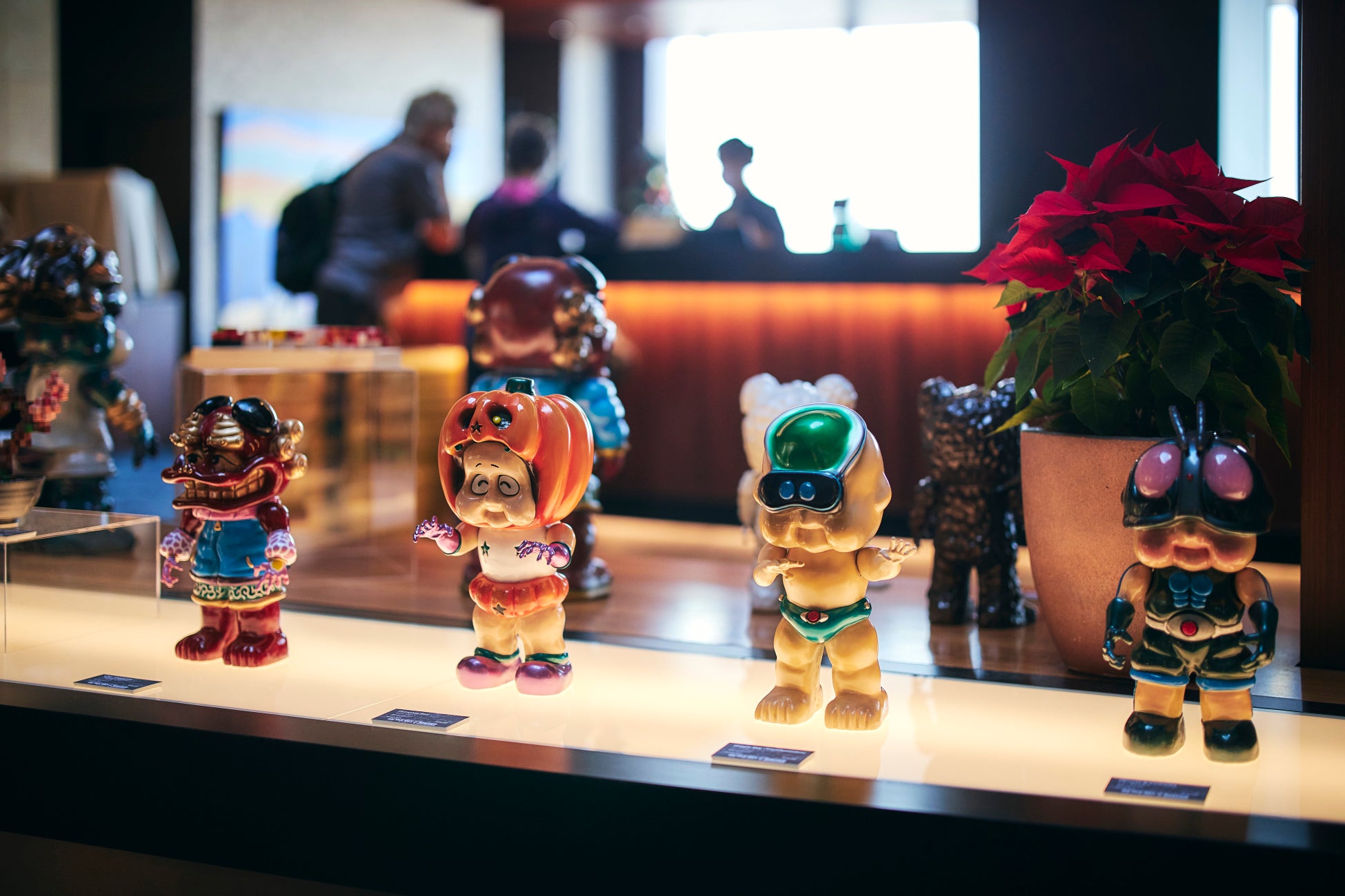 Through humorous and slightly awkward characters, Sato delivers warmth to viewers. Installed in the hotel space, his works harmonize with light and air, creating a new “winter time.”