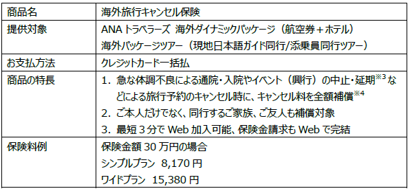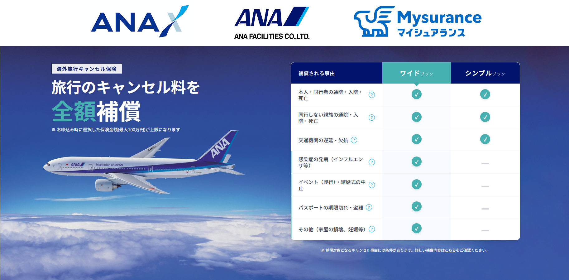 ANA X株式会社(本社:東京都中央区、代表取締役社長:神田 真也、以下「ANA X」)、ANAファシリティーズ株式会社(本社:東京都中央区、代表取締役社長:近藤 博之、以下「ANAファシリティーズ」)、損害保険ジャパン株式会社の子会社で少額短期保険業を営むMysurance(マイシュアランス)株式会社(本社:東京都新宿区、代表取締役社長:清水 廣臣、以下「Mysurance」)は、ANAトラベラーズ 海外ダイナミックパッケージ(航空券+宿泊)および海外パッケージツアー(現地日本語ガイド同行/添乗員同行ツアー)の予約と同時に、簡単かつシームレスに手続きが可能な「海外旅行キャンセル保険」のご案内を2025年12月17日より開始します。