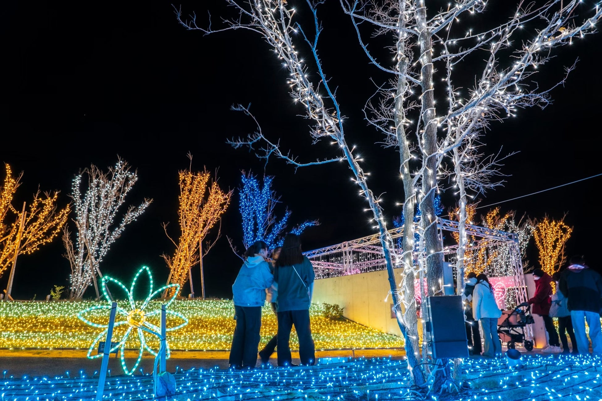 会場となるSENNAN LONG PARK(泉南りんくう公園)では、約7万5,000球のイルミネーションが一斉に点灯。海辺ならではの開放的なロケーションと光の演出が融合し、冬の夜を幻想的に彩ります。園内には光の回廊やフォトスポットが点在し、訪れる人々は散策しながら、心温まるひとときをお楽しみいただけます。