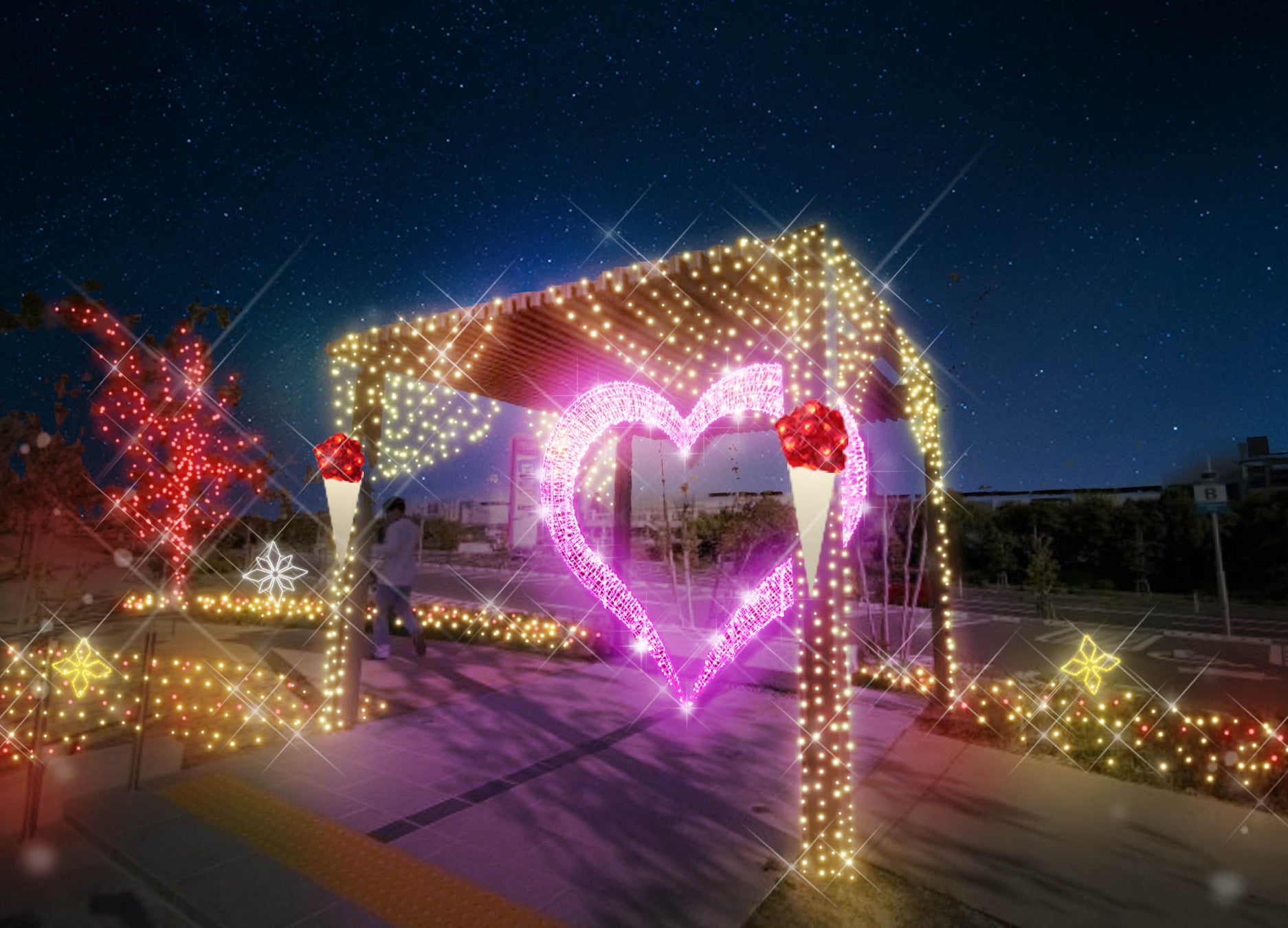 毎年多くの来場者に親しまれているハート型フォトスポットは、想いを誓い、願いを込める特別な空間として演出されています。