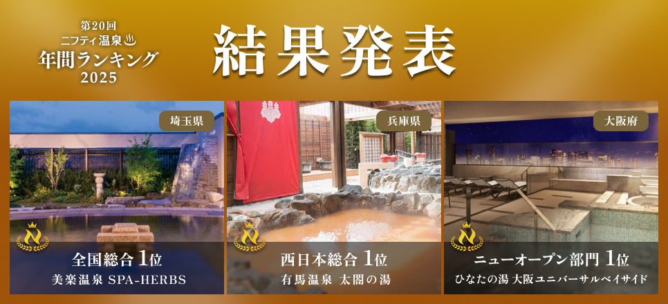 ニフティライフスタイル株式会社(本社:東京都中野区、代表取締役社長:成田隆志、証券コード:4262)は、温泉・スパ情報専門サービス「ニフティ温泉」にて、2025年12月18日(木)、「第20回 ニフティ温泉 年間ランキング2025」を発表いたしました。