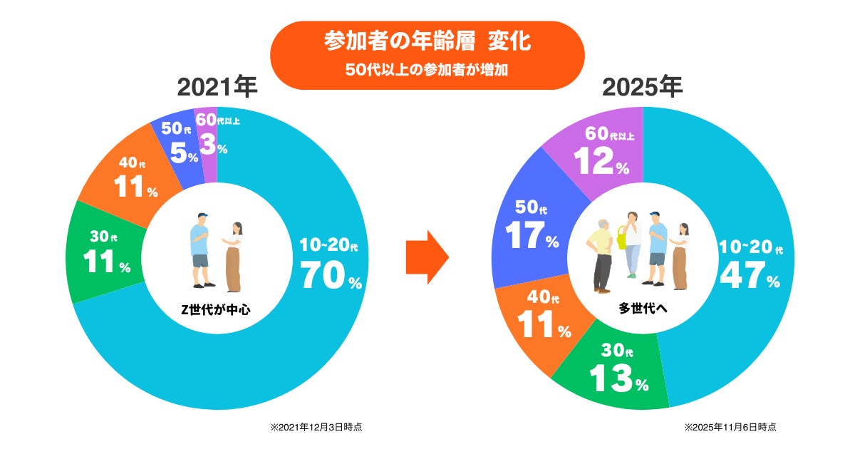 特に注目すべきは、50代以上の利用者の増加です。 参加者の約半数は10代・20代のZ世代ですが、「人生100年時代」と言われる今、早期退職をした方や子育てを終えた主婦など、ミドル・シニア層の利用が急増しています。こうした背景から、「おてつたび」は若年層にとどまらず、シニア世代にも大きな広がりを見せています。