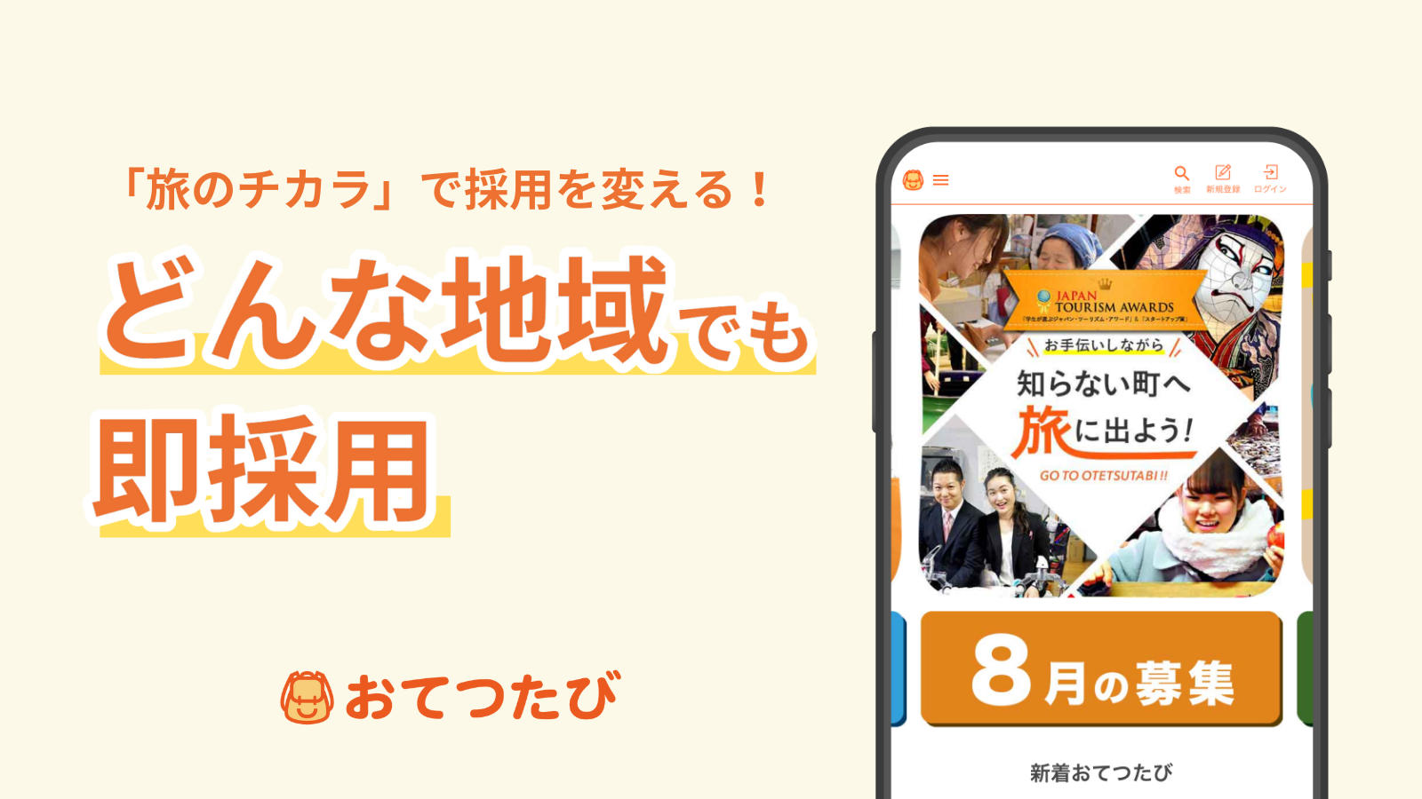 「おてつたび」は、「お手伝い」と「旅」を組み合わせた人材マッチングサービスです。人手不足に悩む地域事業者と、「働きながら旅をしたい」旅行者をマッチングしています。