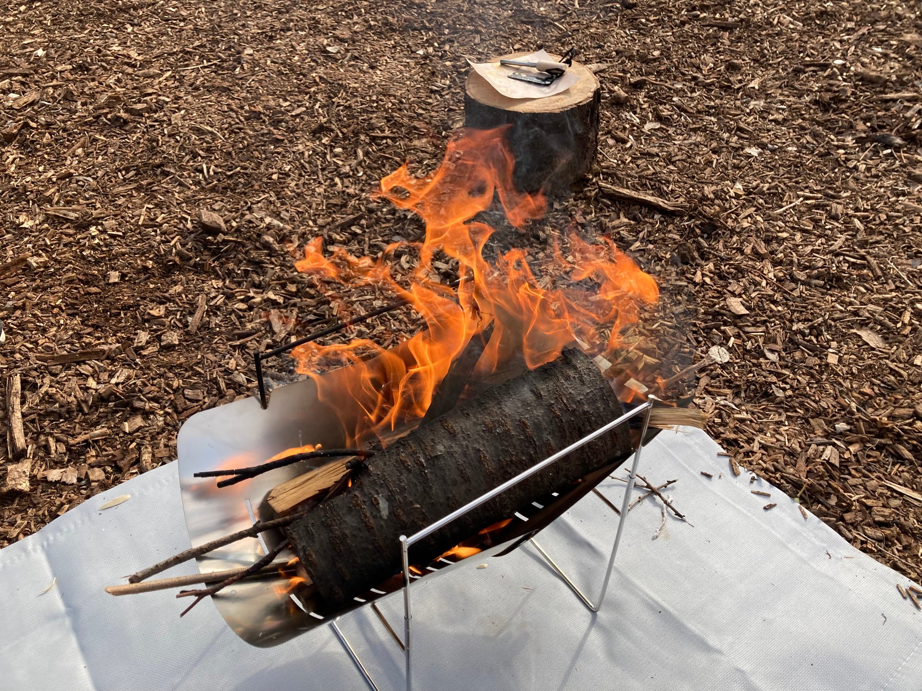 公園の樹木を剪定したときに発生した木材や間伐材(かんばつざい)などを使い、「薪割」や「火付け」の体験ができるミニプログラムです。道具の使い方なども学んでいただくことができます。スタッフがわかりやすくレクチャーしますので、アウトドア初心者の方にもおすすめ!