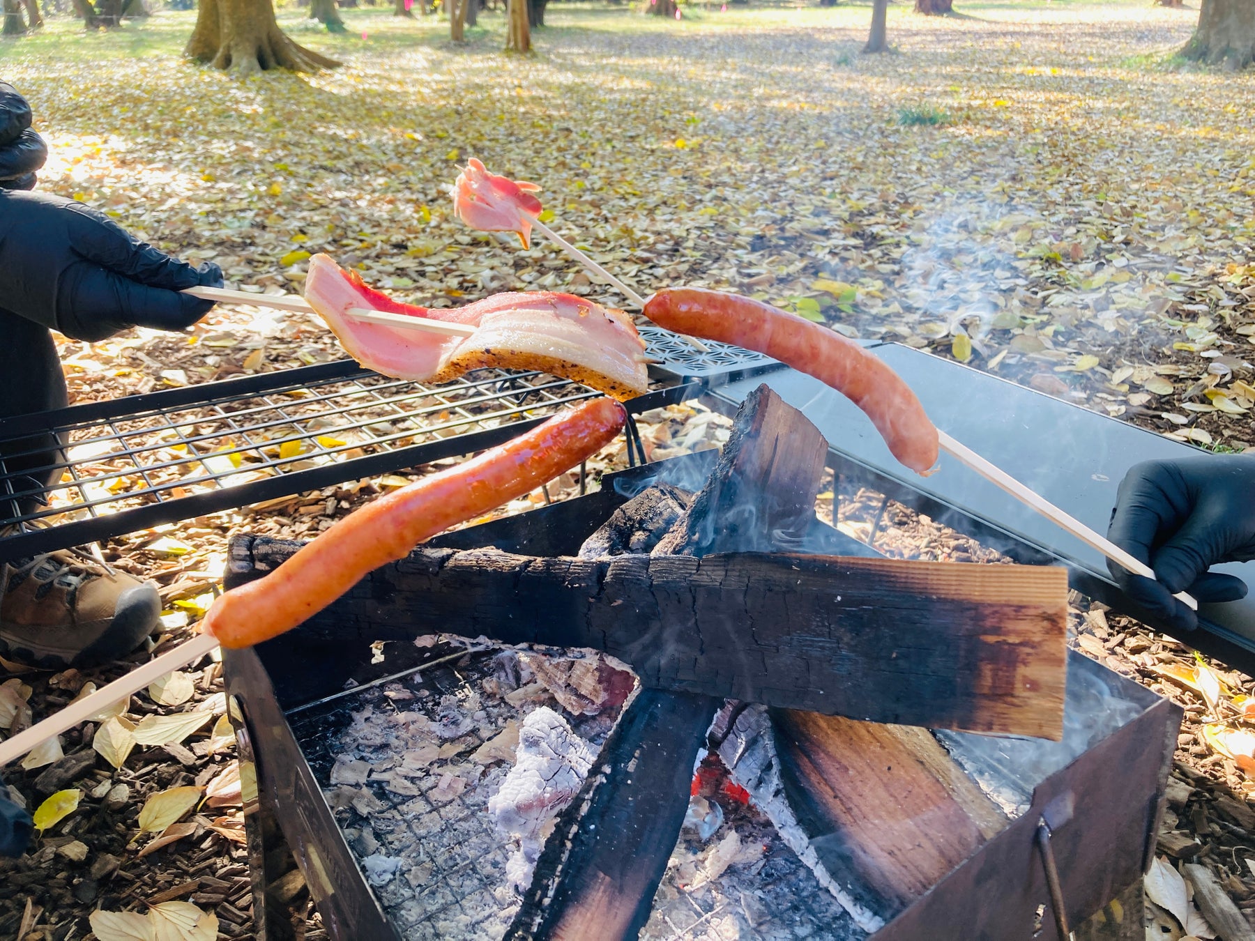 通常、公園内では安全のためにたき火は禁止されていますが、このイベントでは特別に体験することができます!豊かな木々に囲まれた公園で、暖かいたき火を囲みながら火で炙って楽しめるマシュマロやフランクフルトなどのワンコインメニューや、ミニコンサートなどが楽しめます。